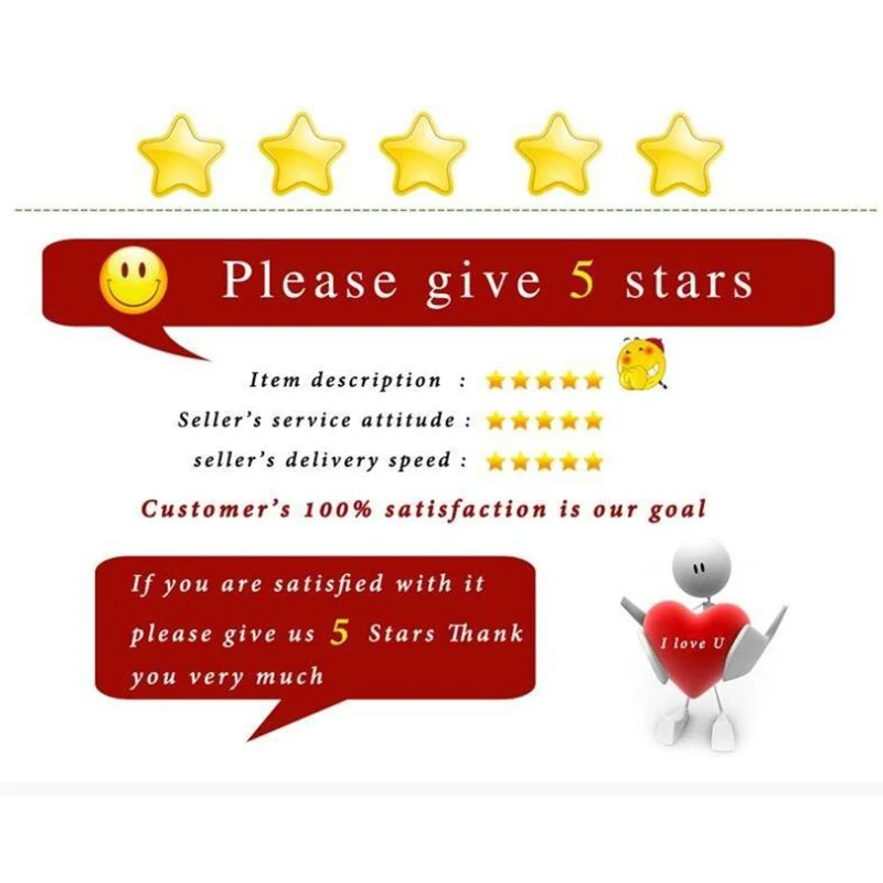 Sinceyour feedback is very important to our business`s development, we sincerely invite you to leave positive feedback for us if you are satisfied with our product and service. It`ll just take you 1 minute. Thank you!