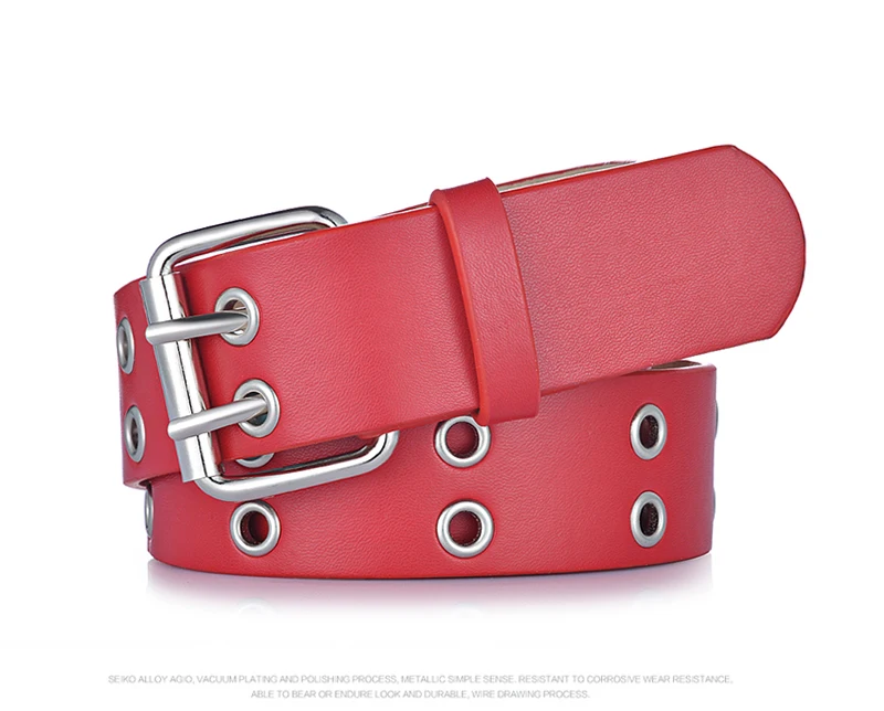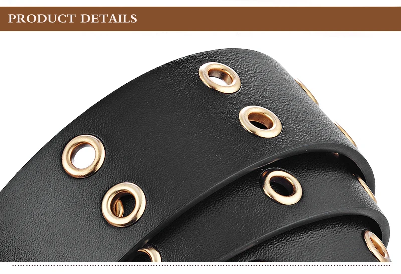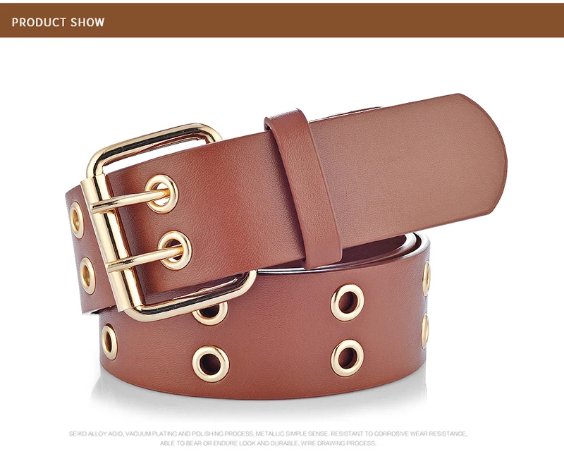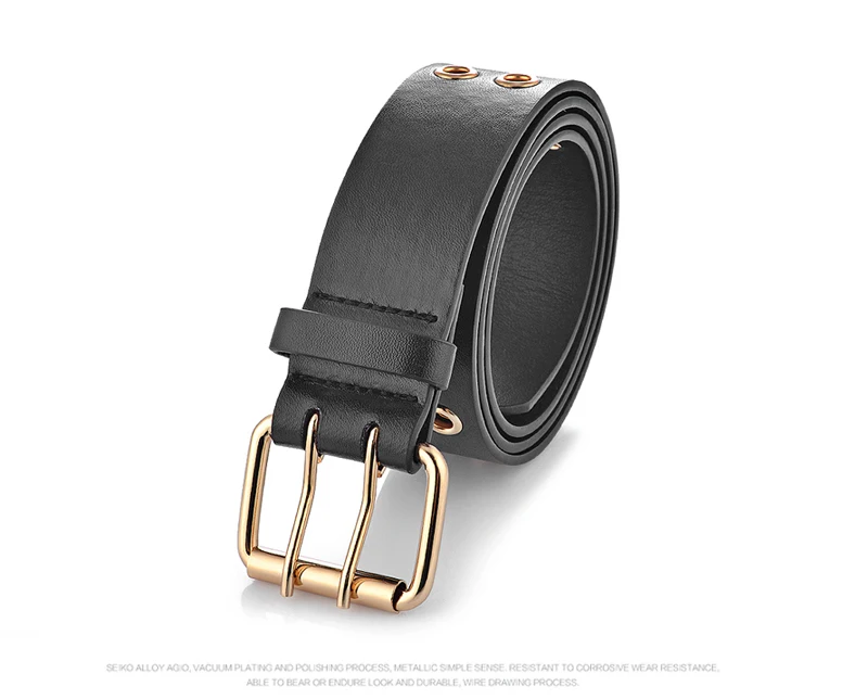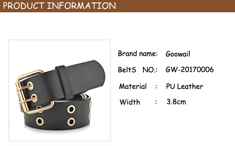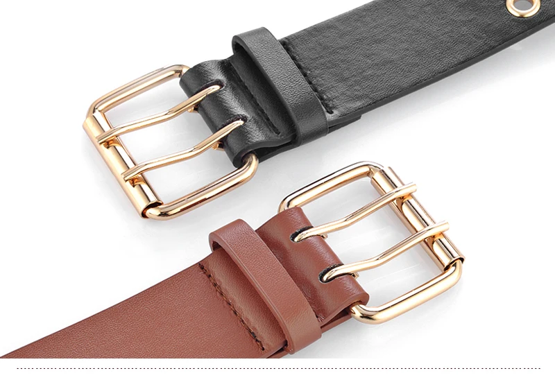 Goowail 2017 Gold 2 Row Grommet Fashion Belts For Women Double Pin Buckle Designer PU Leather Waist strap for ladies jeans
