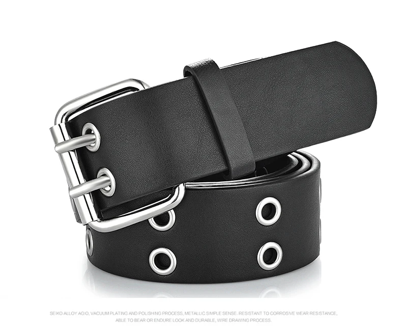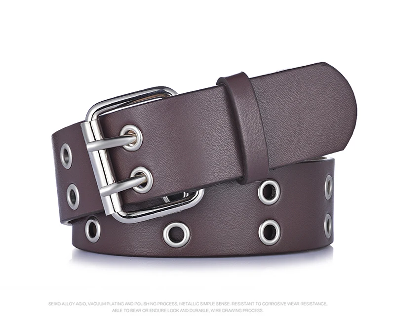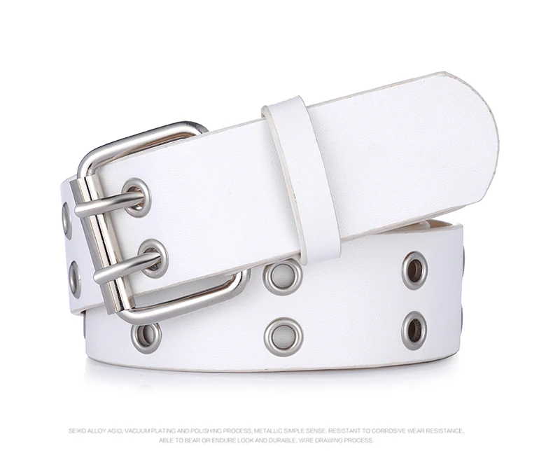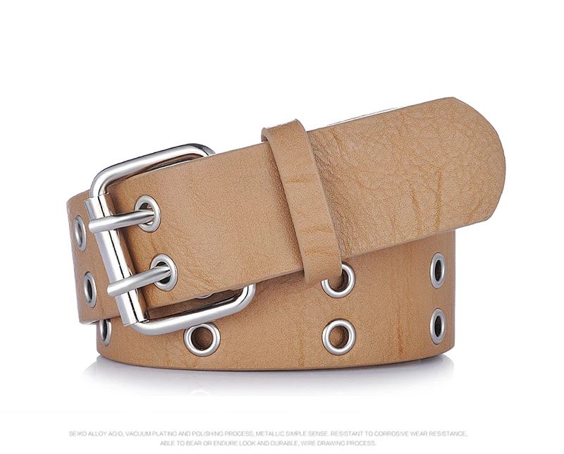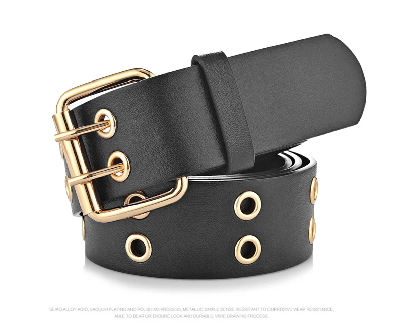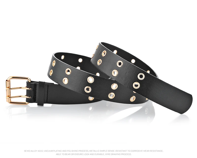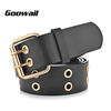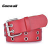 Goowail 2017 Gold 2 Row Grommet Fashion Belts For Women Double Pin Buckle Designer PU Leather Waist strap for ladies jeans