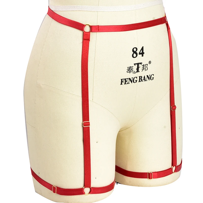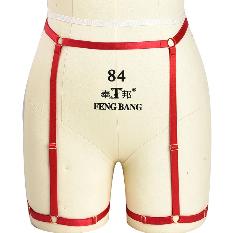 Gothic Fetish Red Lingerie High Waist Wedding Garter Belt Body Harness Pole Dance Crop Top Harness Bra Stocking Garter belt