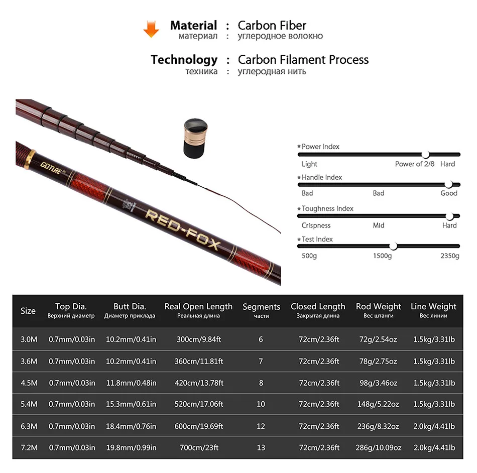 Goture Stream Carp Fishing Set RED FOX Carbon Stream Hand Fishing Rod ,Float And Line Rig Kit With Spare Top Three tips