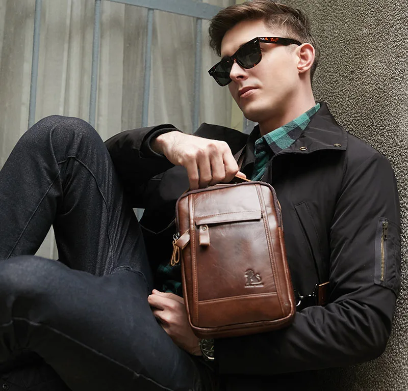 GOWINLIN Messenger Chest Bag Men Shoulder Bag Man Satchels Handbags Cow Leather Sling Bags designer Casual Men Crossbody Bags