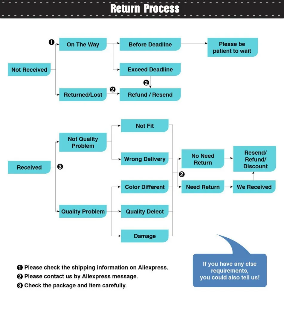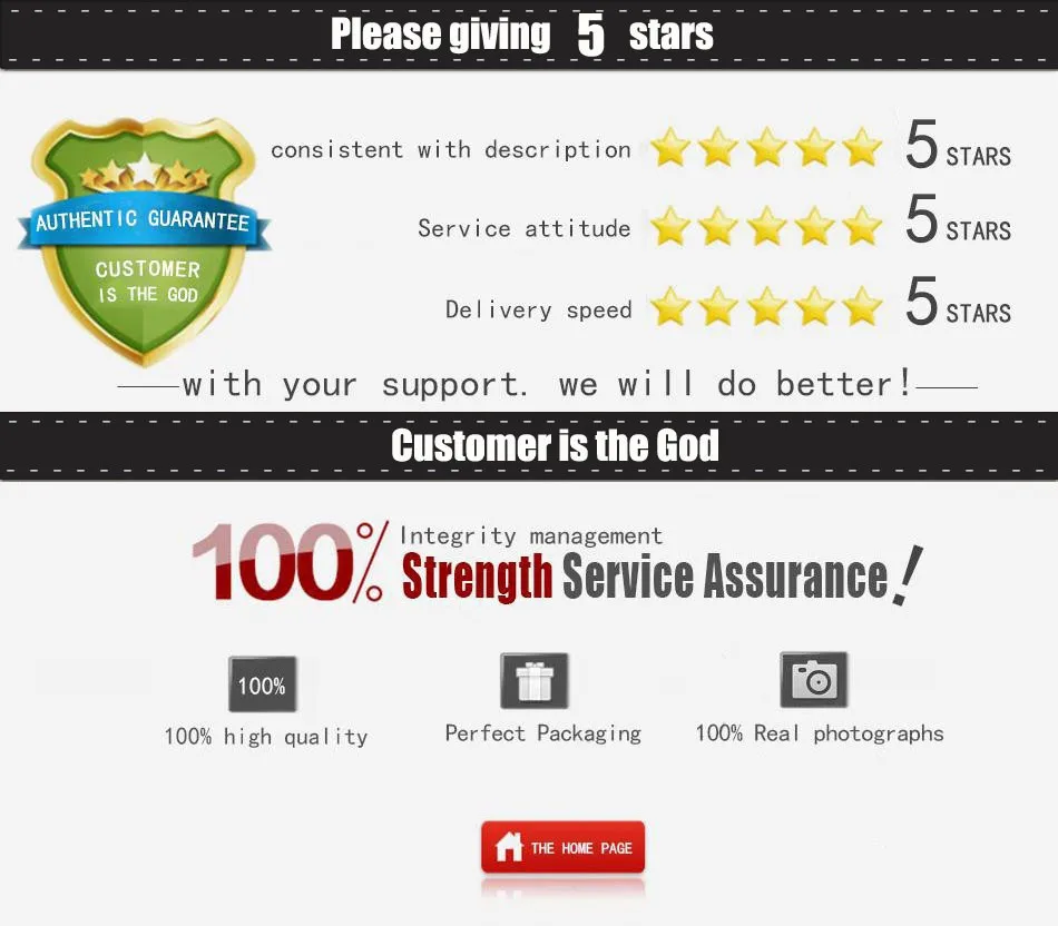 1) Our aim is to provide Top Level Customer Service, and our customer service specialists are always standing by to solve any of your problem. If you have any questions about the shipping time & defective quality & items no received, please do contact us, we can give you a satisfied answer & resolution. We greatly appreciate your 5-STAR POSITIVE feedback and please do NOT leave negative feedback without asking for help.