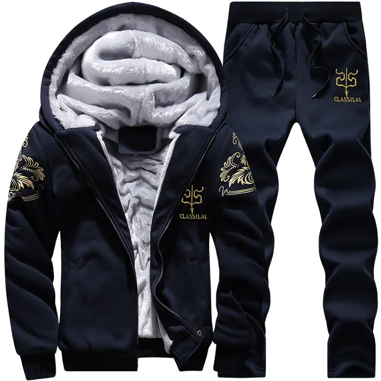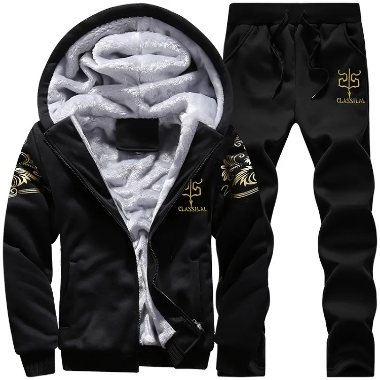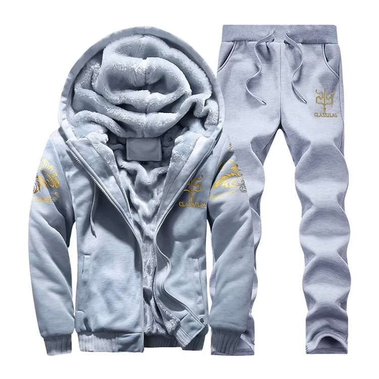 Grandwish Casual Mens Tracksuit Winter Two Piece Sets Fleece Thick Hooded Jacket + Pants Sporting Suit Male Trainingspak ,DA880