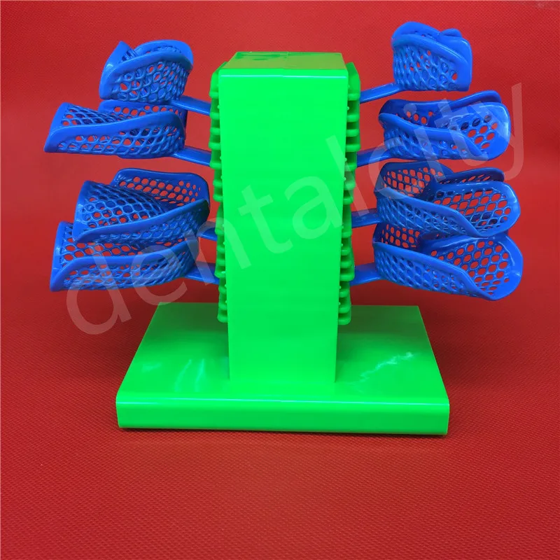 Green Dental Lab Impression Tray Holder Stand Dental Tray Holder With 8PCS Dental Impression Tray