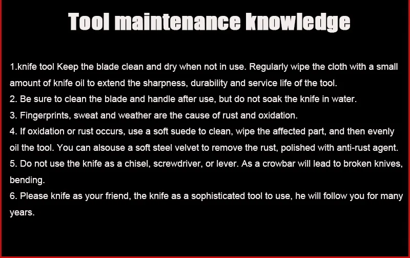 2) Wipe the knife with a clean and dry cloth when you get the products.