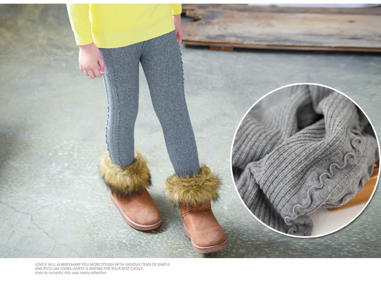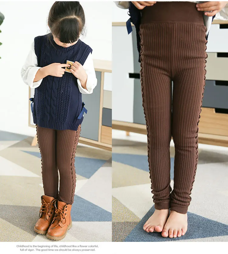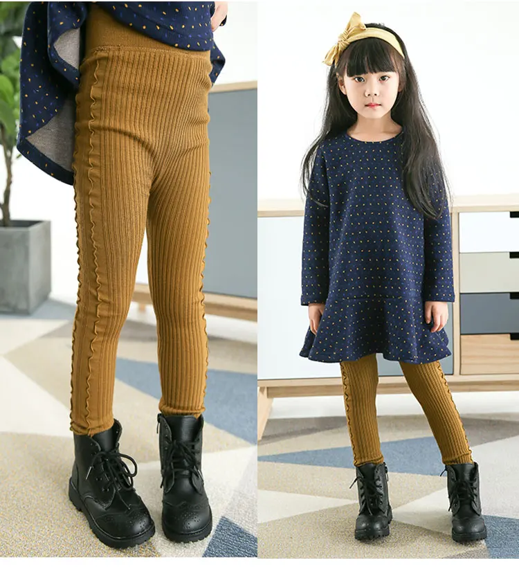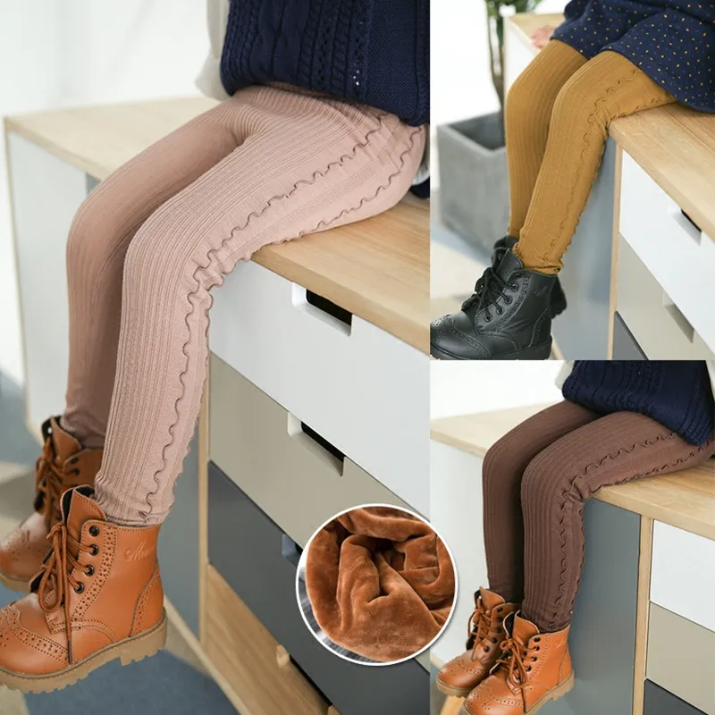 Grils Ruffle Leggings 2018 Winter Children’s Plus Thick Velvet Legging Big Virgin Winter Warm Cotton Pants Girls Bottoming Pant