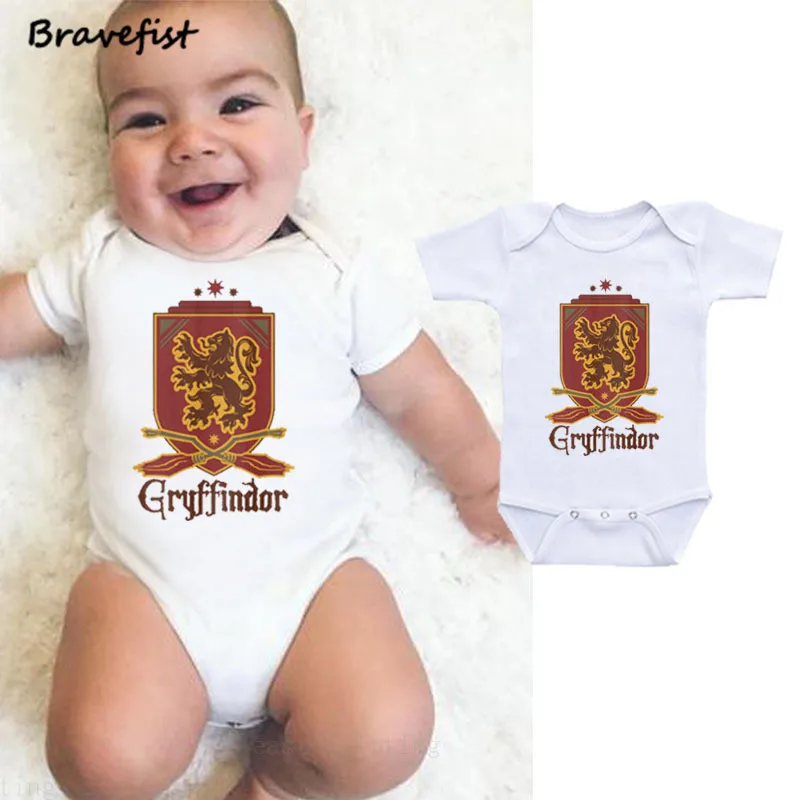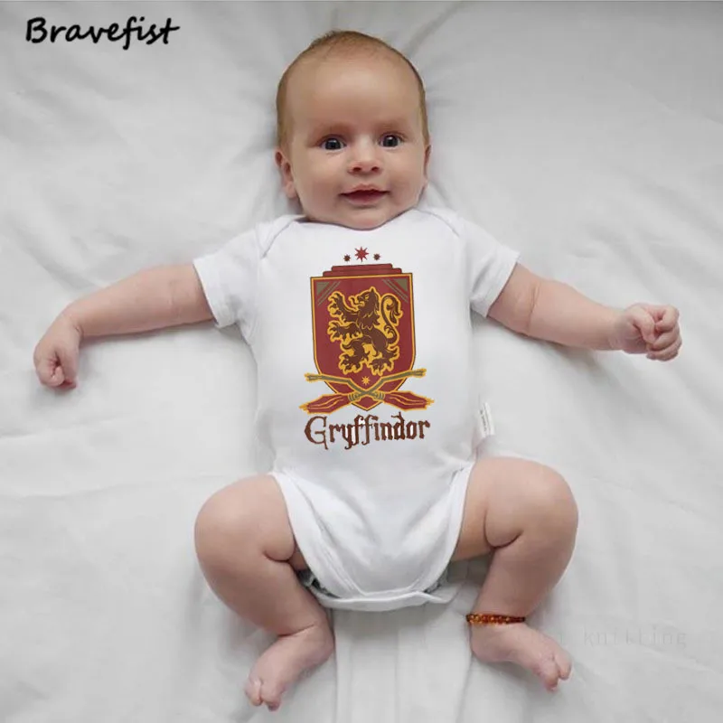 Gryffindor College Print Newborn Bodysuits Cotton Short Sleeve Kids Jumpsuits Onesies Round Neck Summer Baby Clothes Overalls