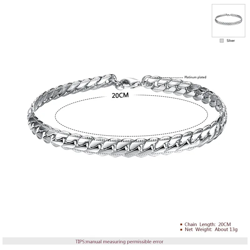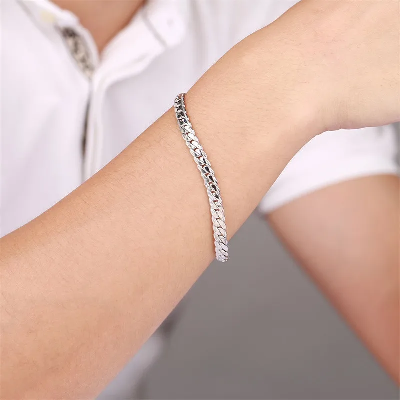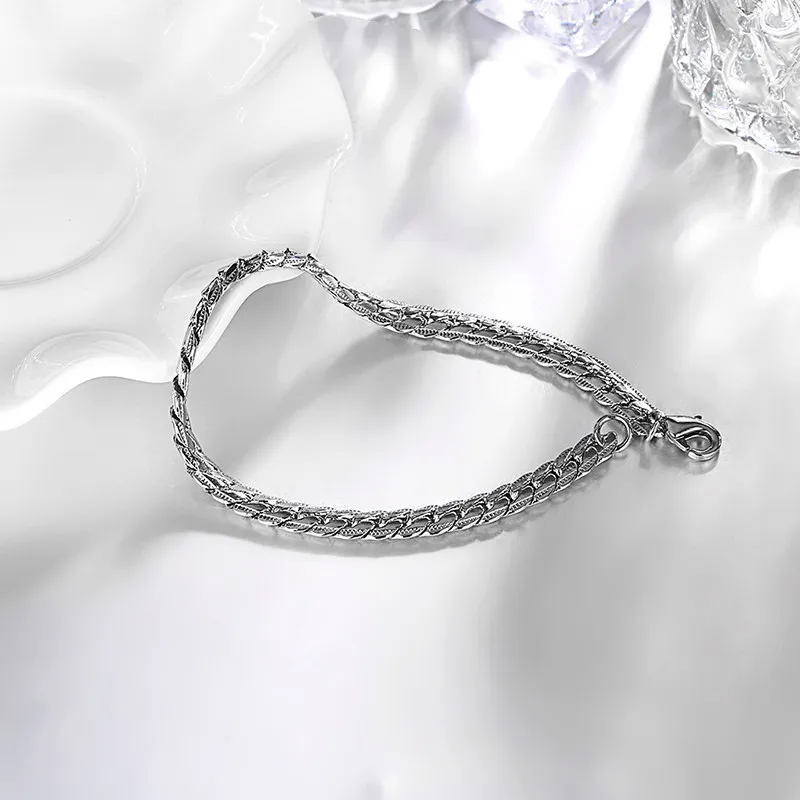 GS 925 Jewelry Silver Plated Bracelet 925 Jewelry Silver Plated Fashion Twisted Bracelet Silver Color for Women Men Y3