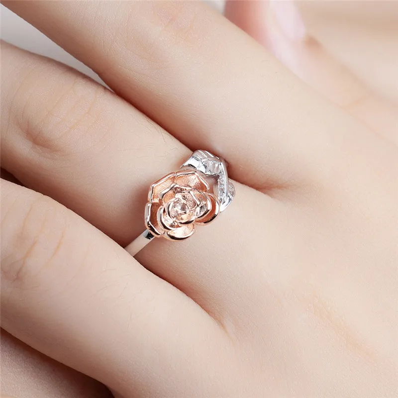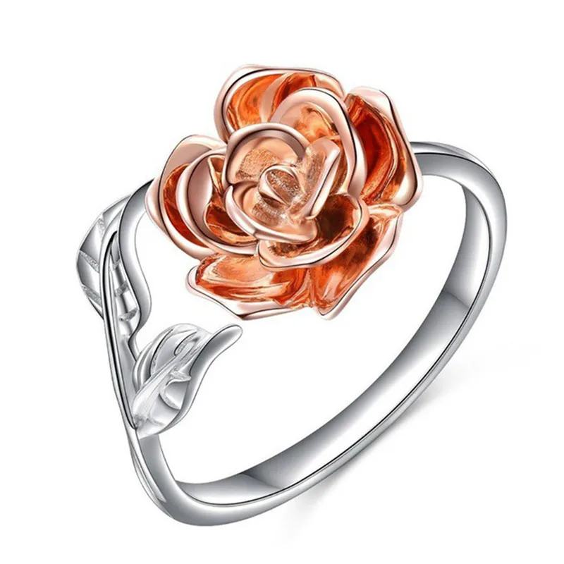 GS New Rose Gold Flower Open Women Wedding Rings Fashion Sliver Adjustable Engagement Ring Lady Female Leaf Opening Jewelry R5DJ