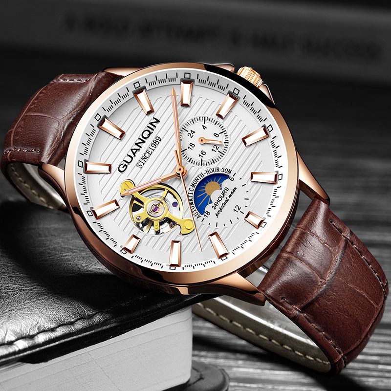 GUANQIN 2018 mens watches top brand luxury Automatic watch skeleton Mechanical clock men waterproof Wristwatches horloges mannen