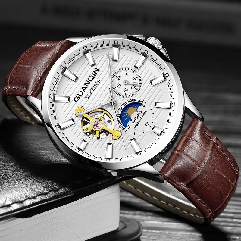 GUANQIN 2018 mens watches top brand luxury Automatic watch skeleton Mechanical clock men waterproof Wristwatches horloges mannen