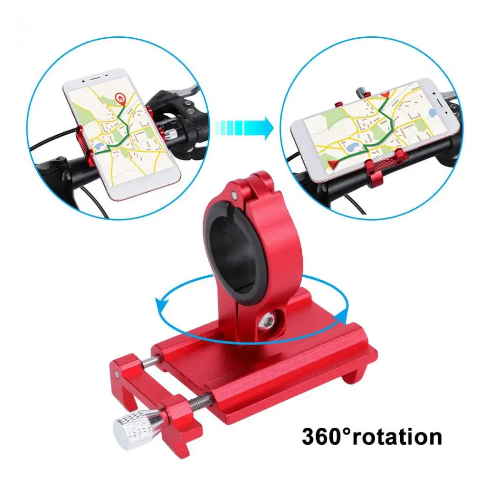 - Multi-functional aluminum alloy bicycle phone holder, mechanical locking is firm and device on it not easy to fall off.