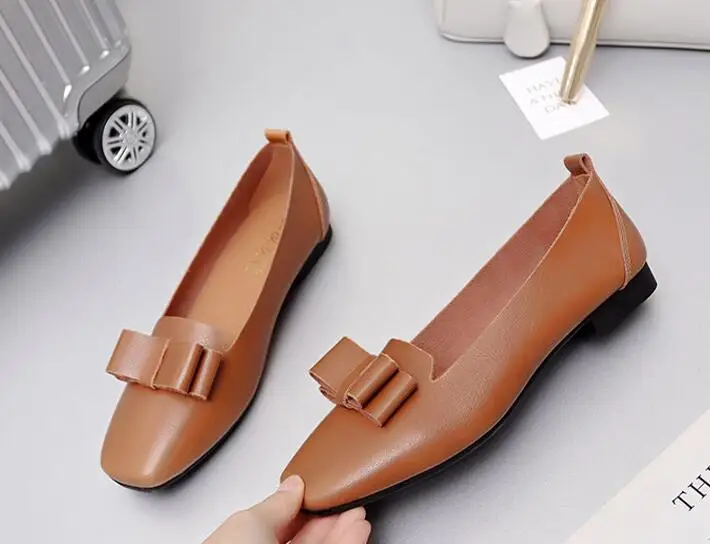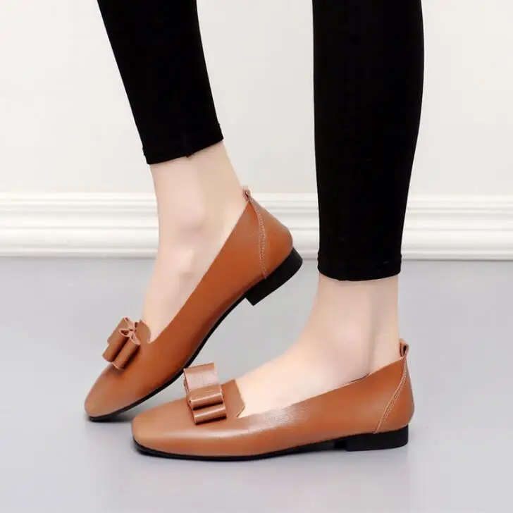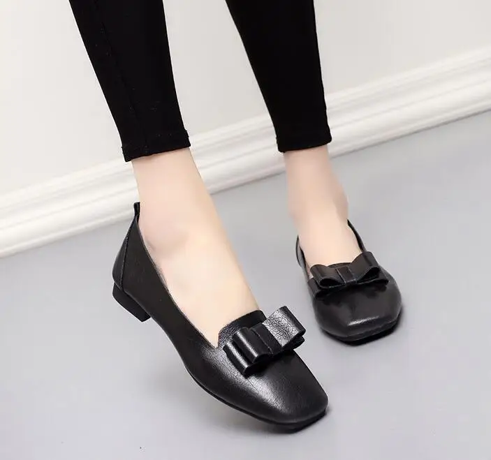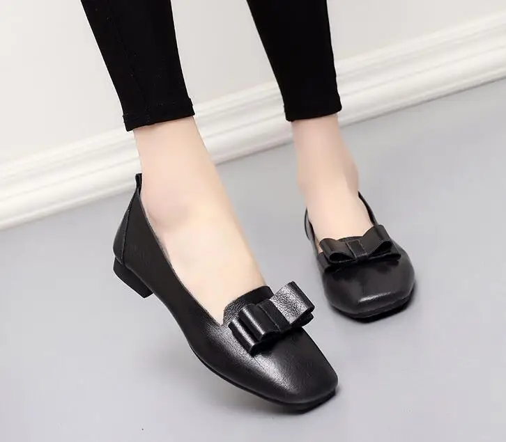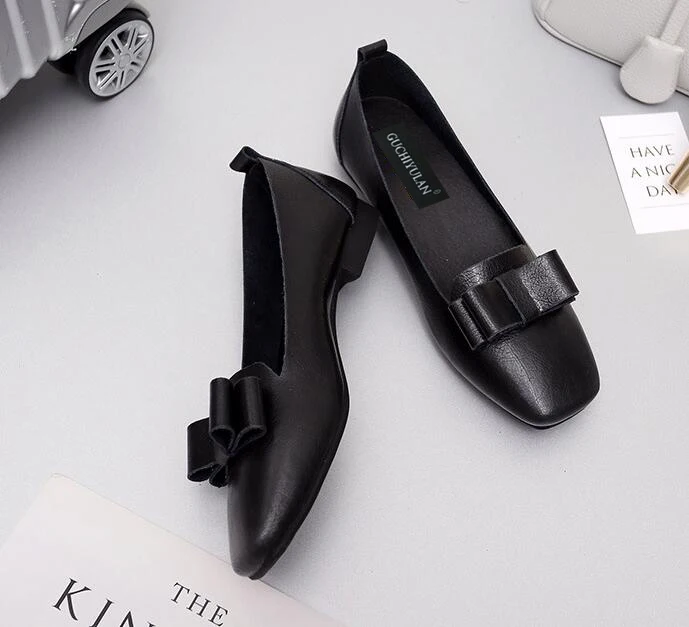 GUCHIYULAN Spring women sneakers oxford flats shoes women leather ballet dancers loafers ladies boat shoes black Bow moccasins
