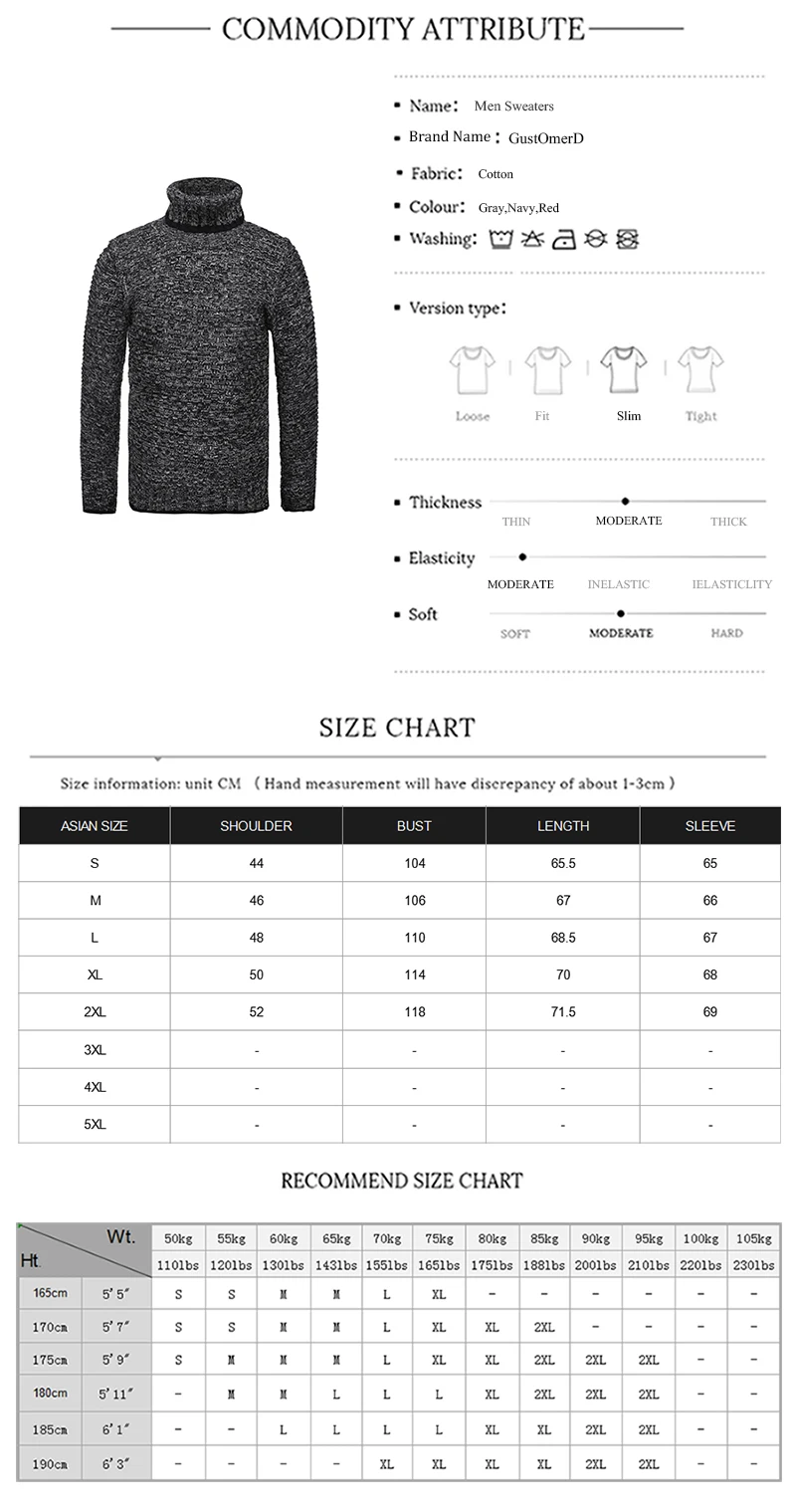 GustOmerD 2018 Autumn & Winter Top Solid Turtleneck Pullover Men Slim Fit Sweater Men Long Sleeve Pullover Mens Sweaters