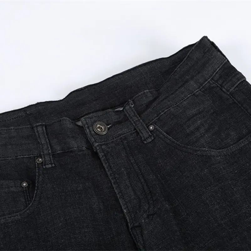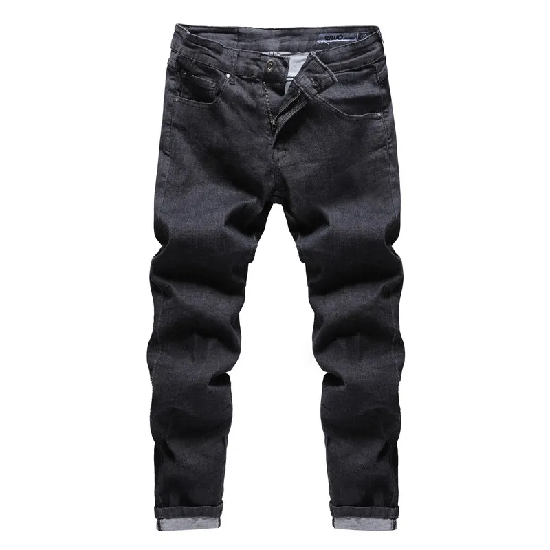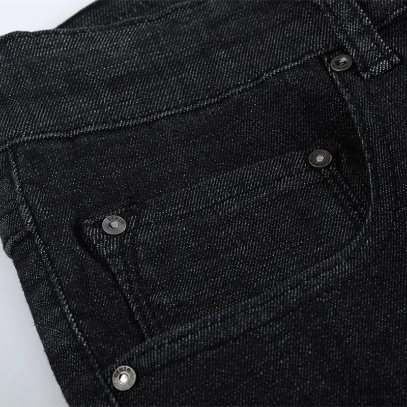 GustOmerD 2018 New Men’s Black Jeans Brand Zipper Straight Pantalon Homme Jean Slim Solid Color Design Biker Pants Fit Casual