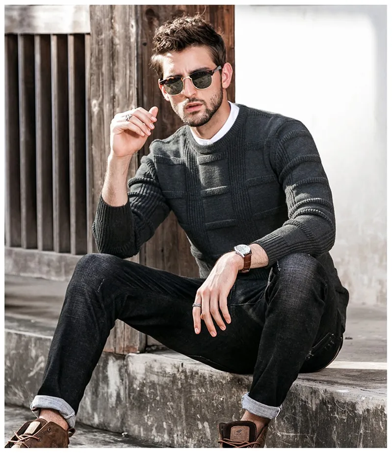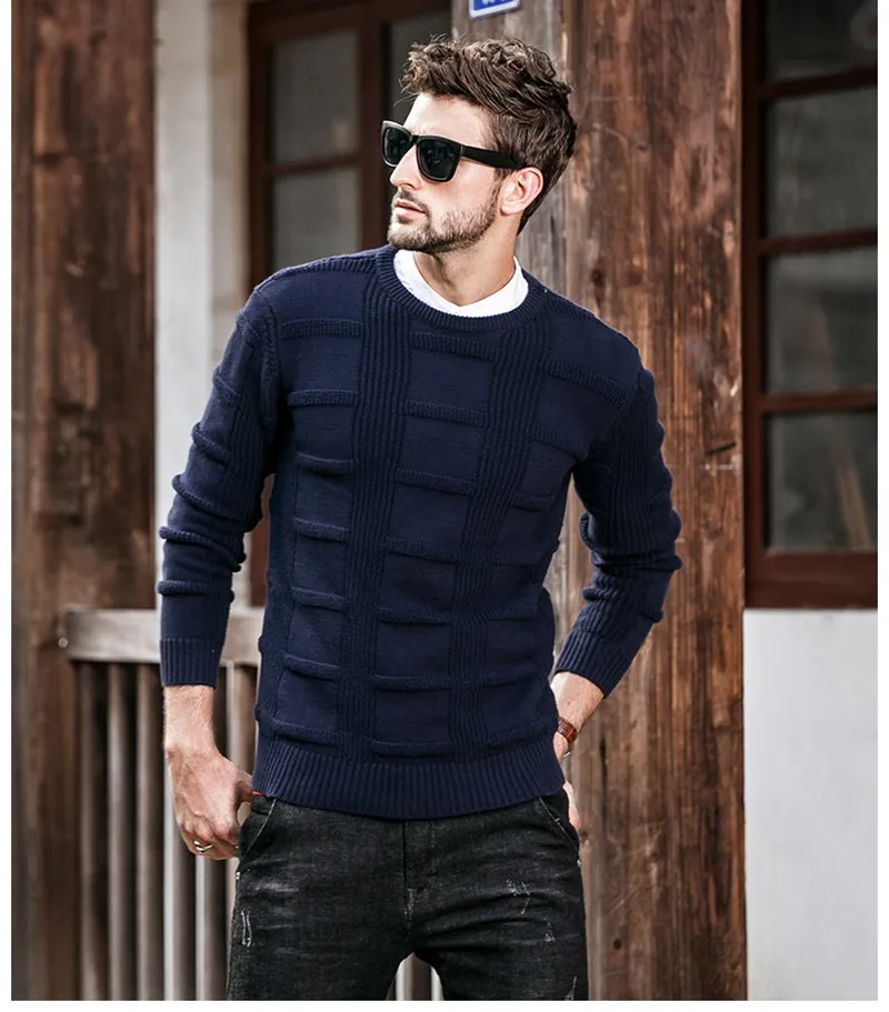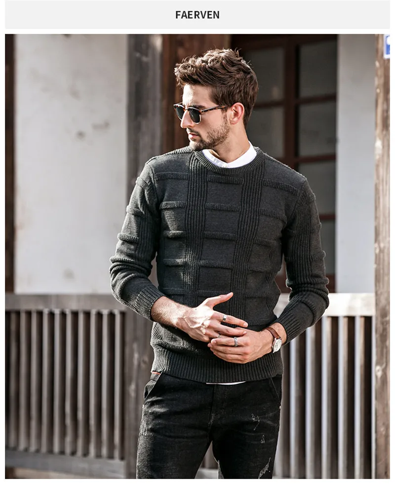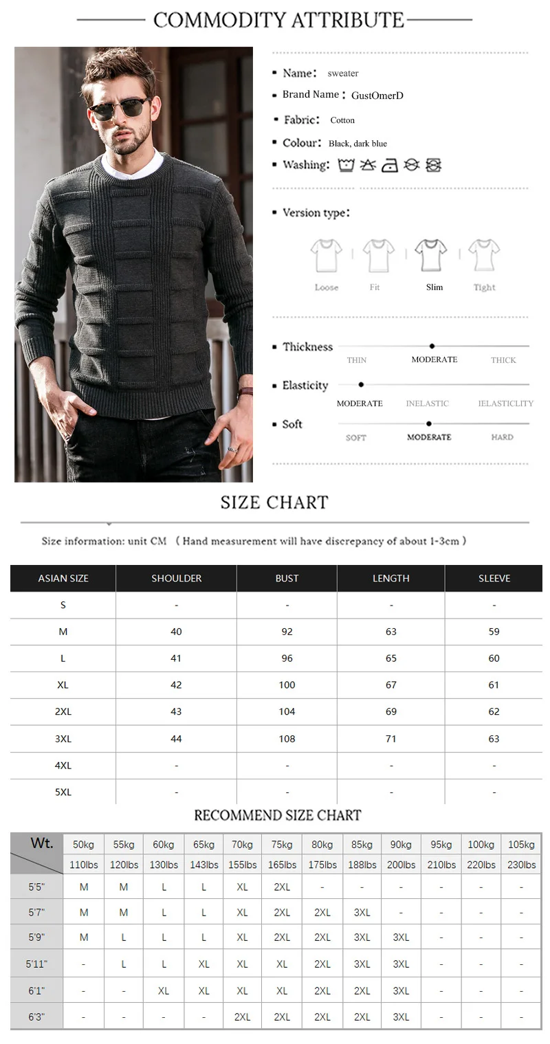 GustOmerD Autumn Winter New Pullover Sweaters Man’s Fashion Casual O-Neck Sweater Men Jumper Knitted Solid Color Mens Sweaters