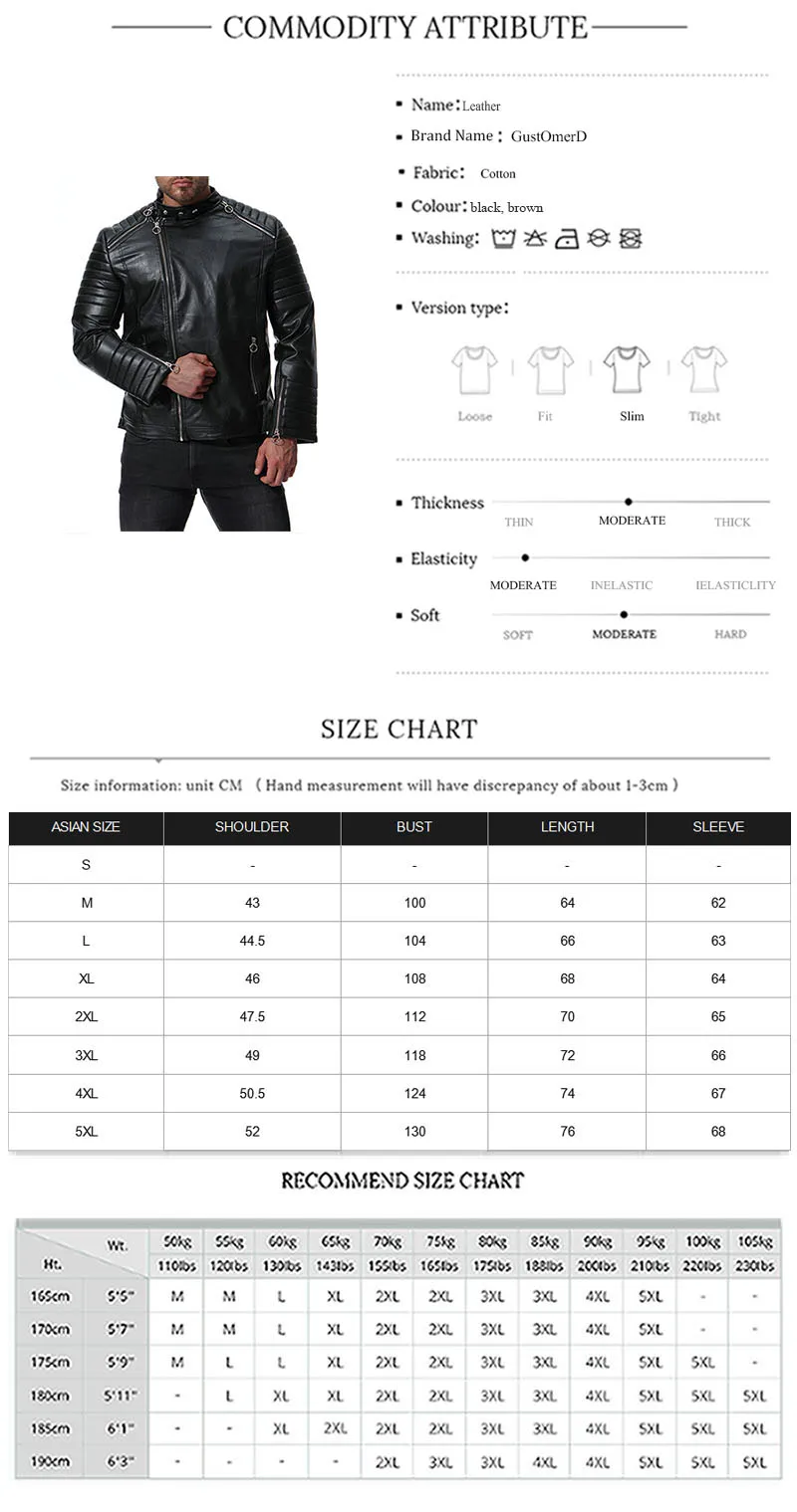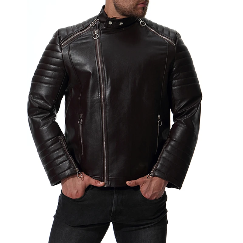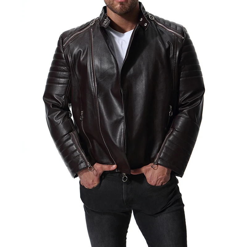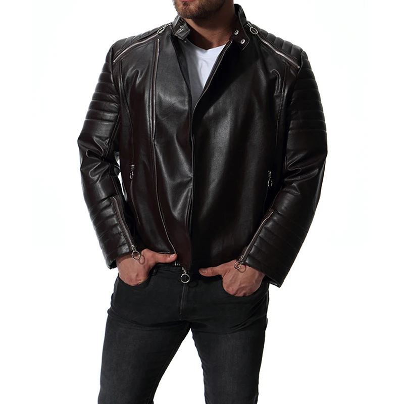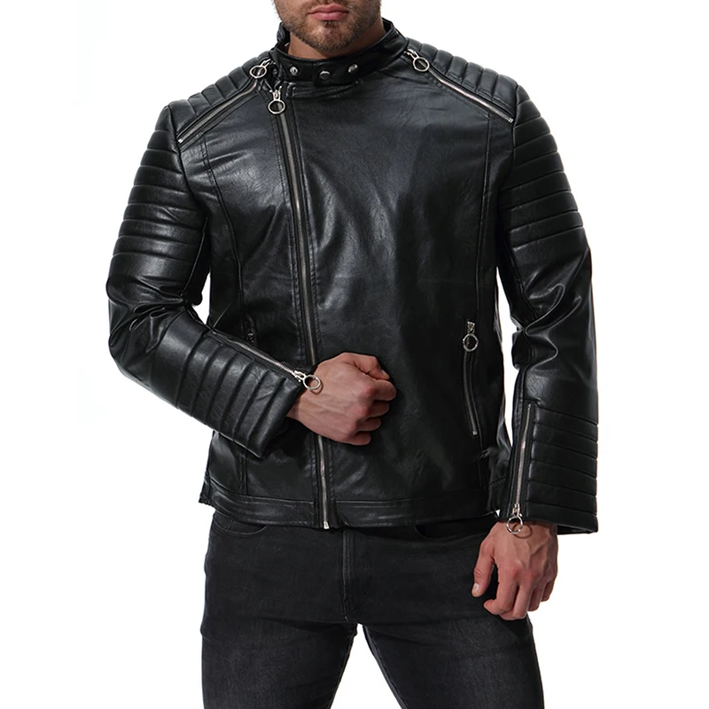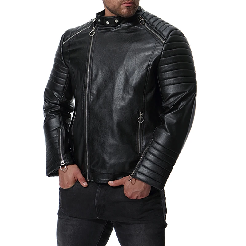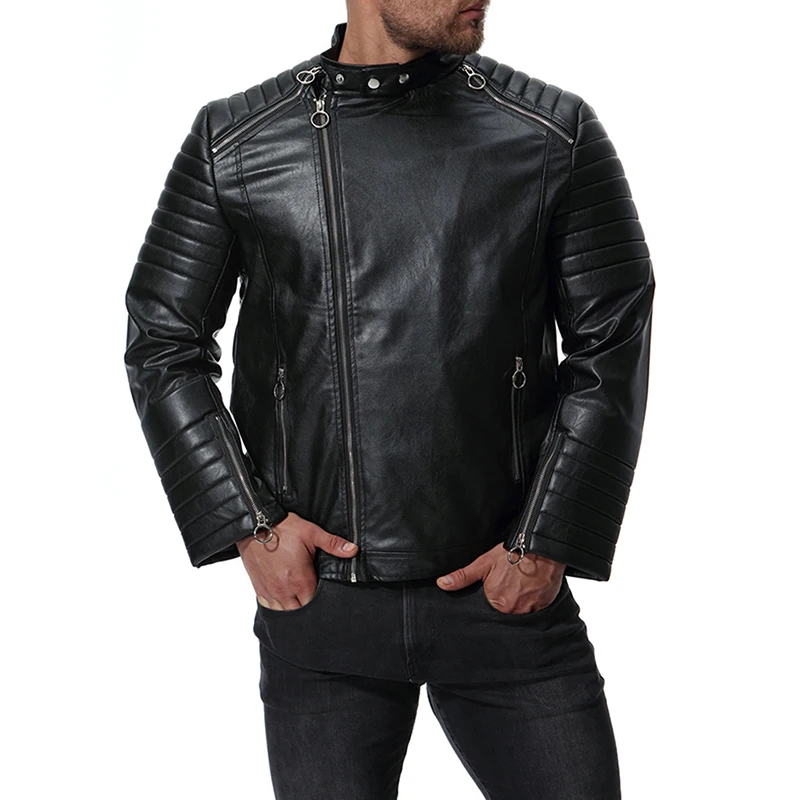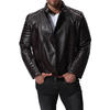 GustOmerD Autumn Winter Solid Zipper PU Leather Jacket Casual Motorcycle Leather Jacket Men Stripe Fold Mens Jackets And Coats