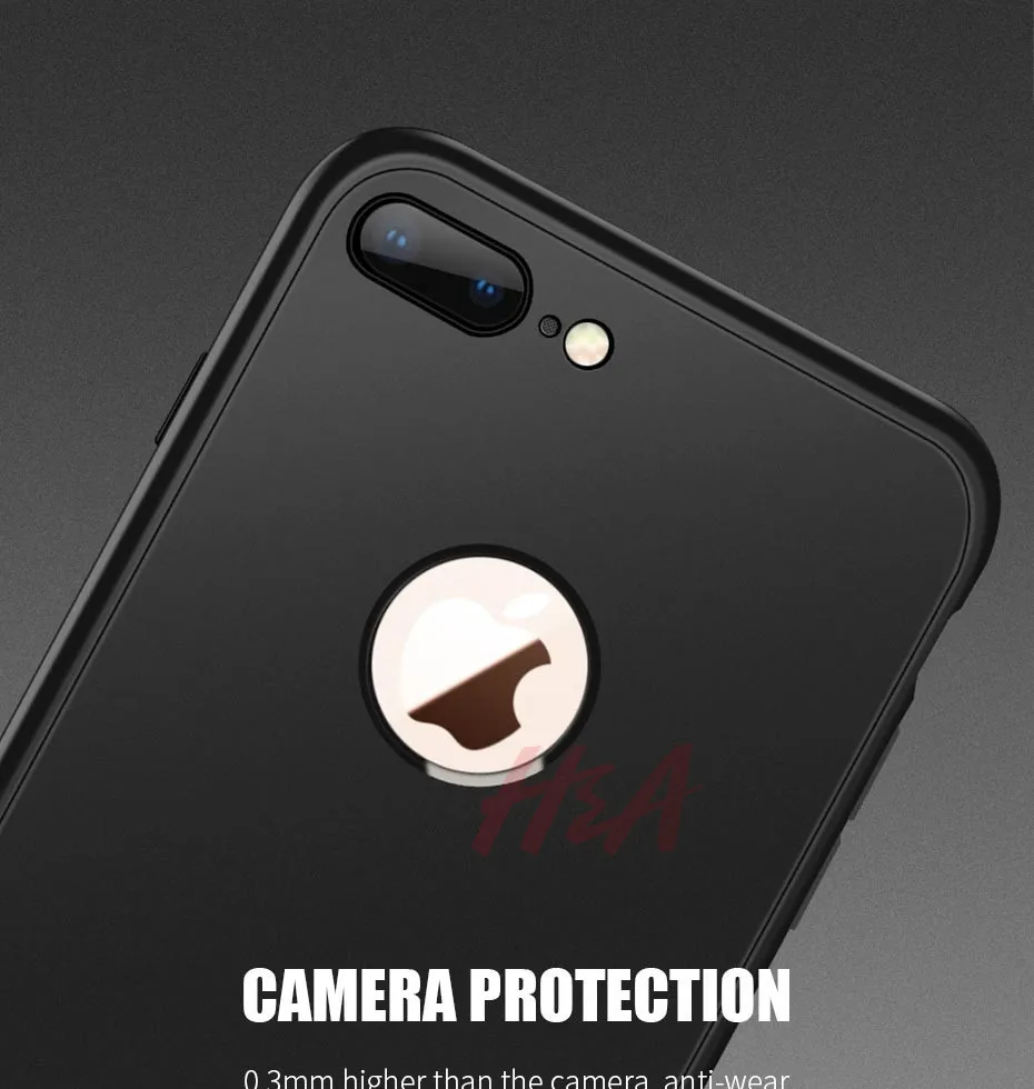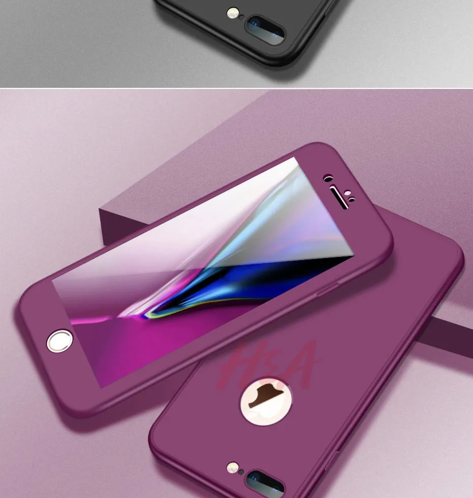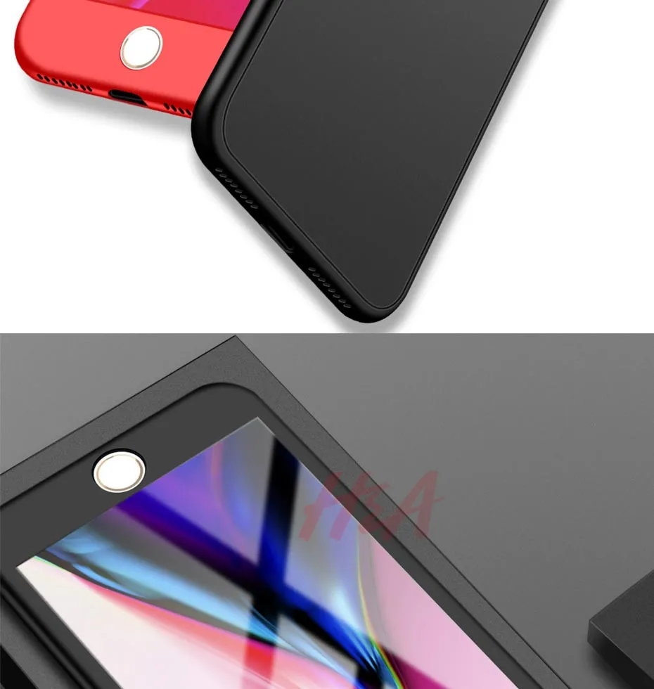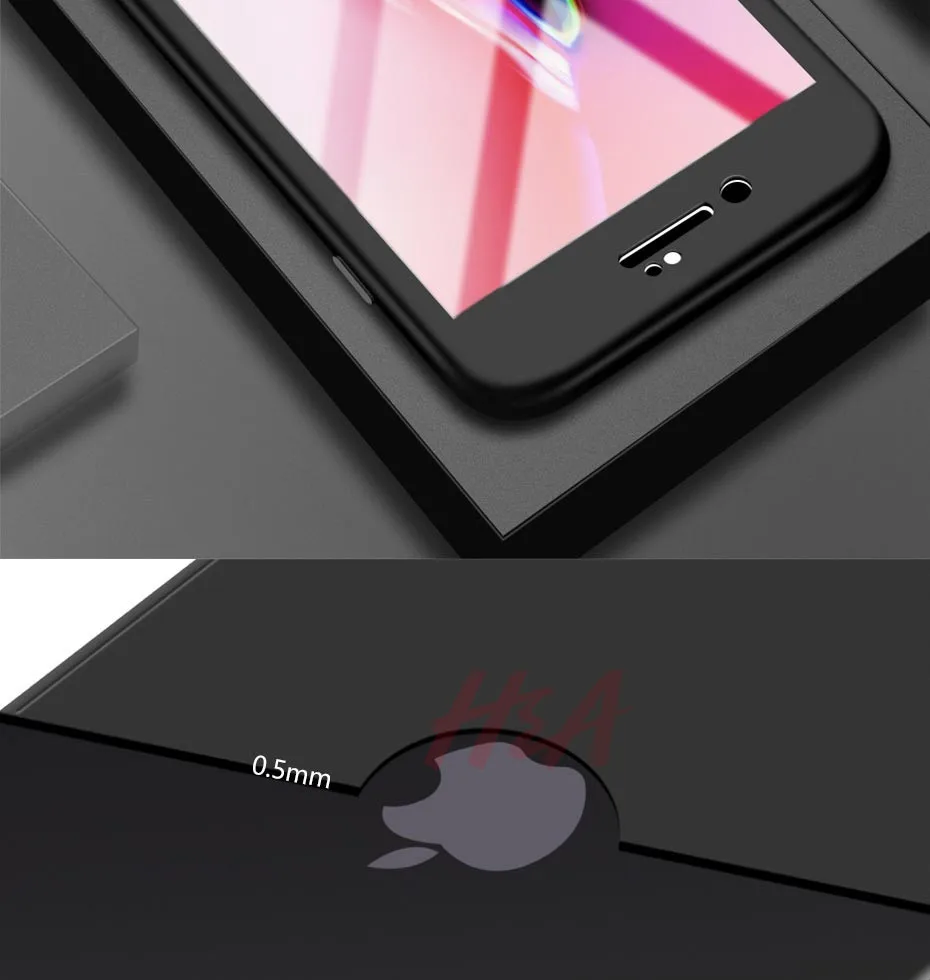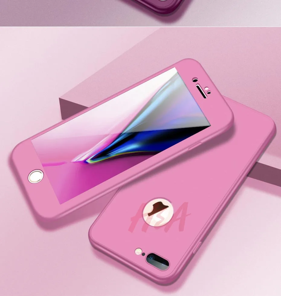 H&A 360 Full Cover Phone Case For iPhone 8 6 6s 7 Plus 5 5s SE Soft Silicone Protective Cover For iPhone 8 Plus Case With Glass