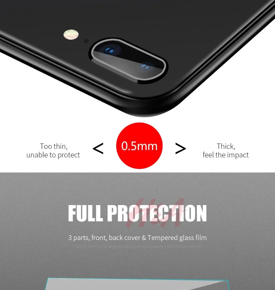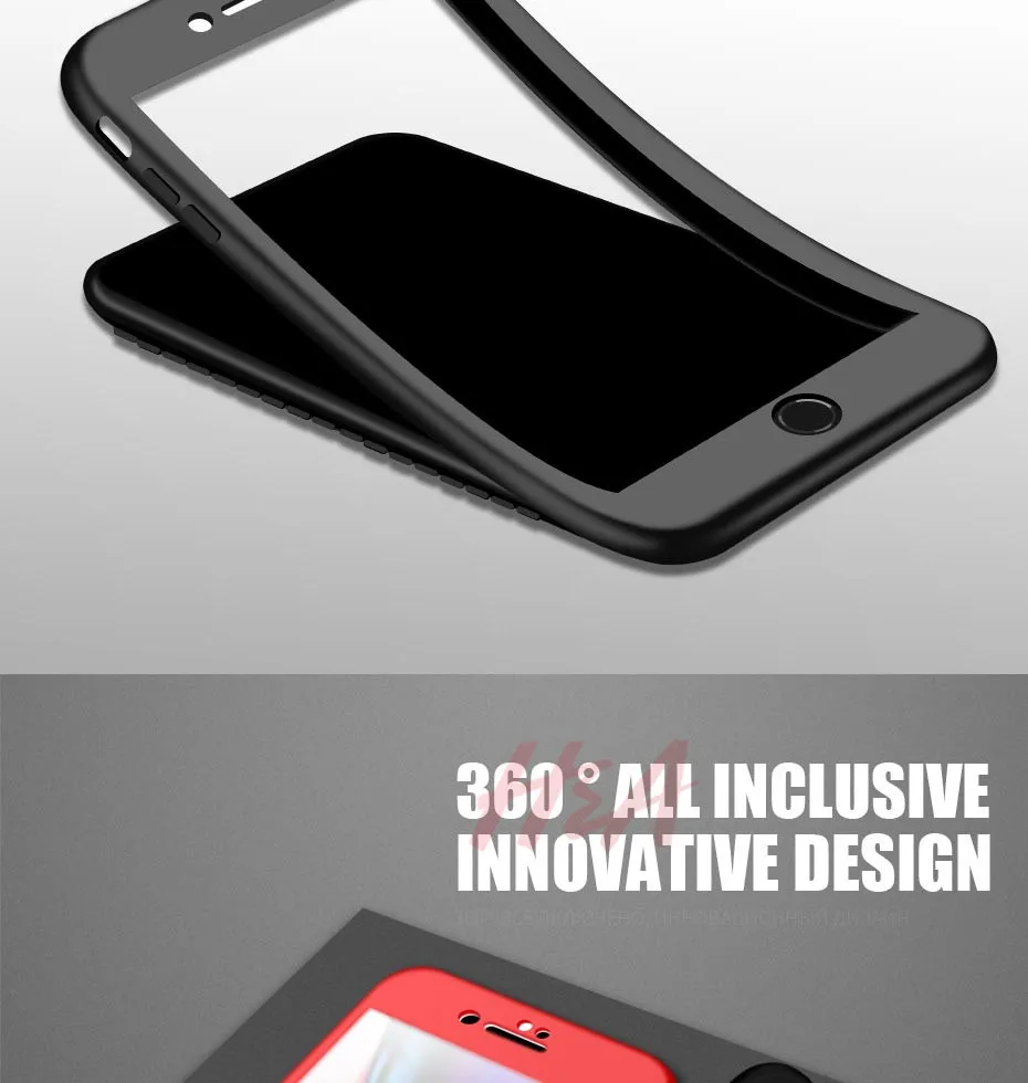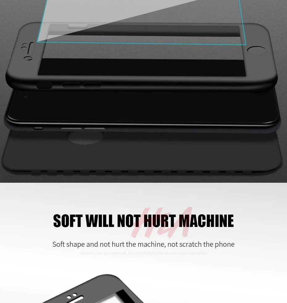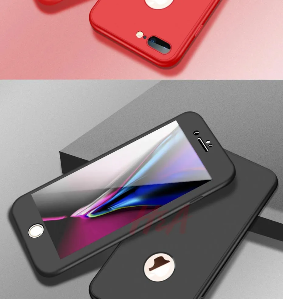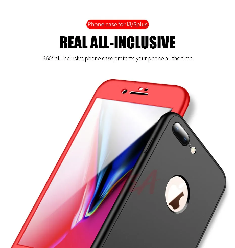 H&A 360 Full Cover Phone Case For iPhone 8 6 6s 7 Plus 5 5s SE Soft Silicone Protective Cover For iPhone 8 Plus Case With Glass