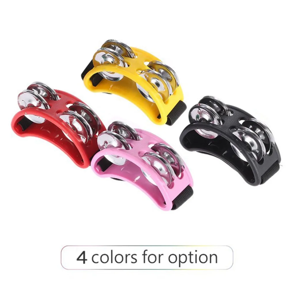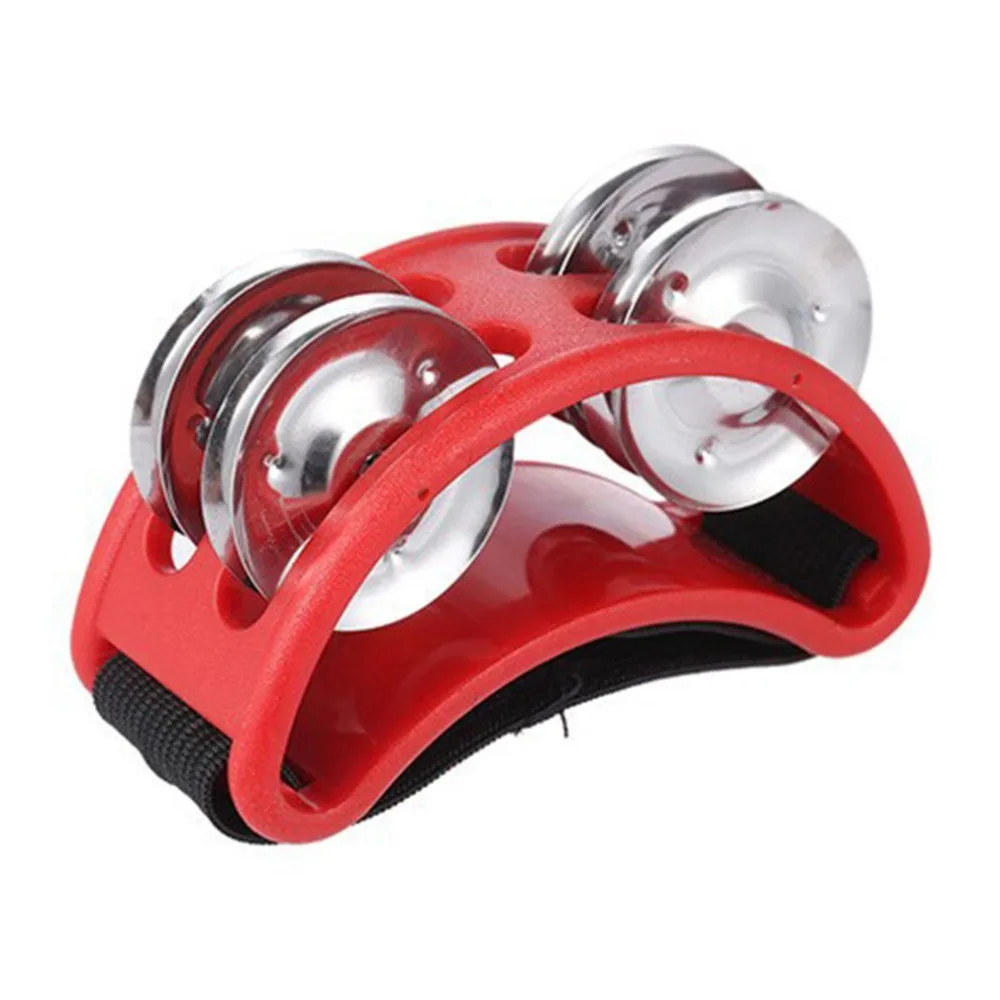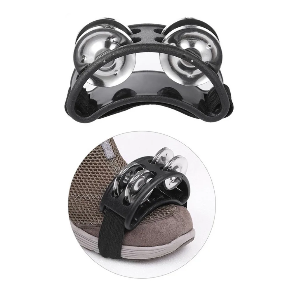 Half Moon Shape Foot Tambourine Metal Jingle Bell Percussion Musical Instrument Box Drum Companion Accessory Black Red Yellow