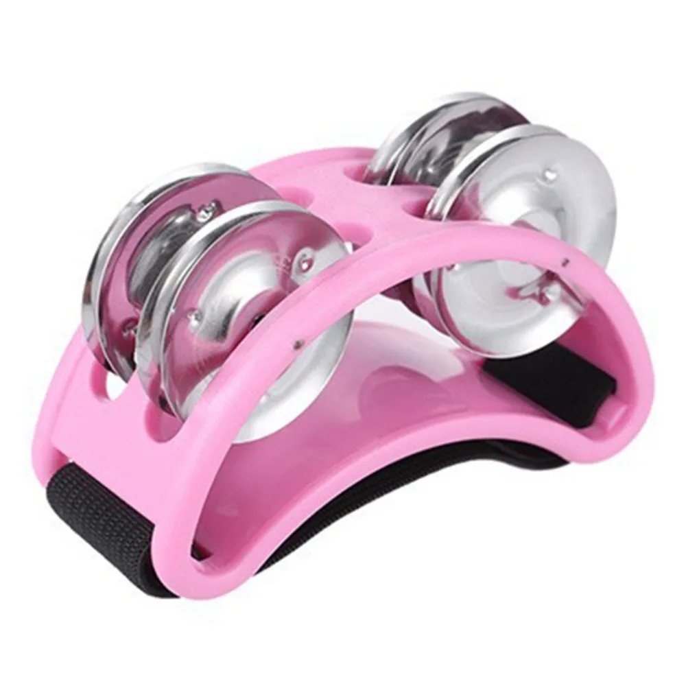 Foot tambourine with elastic nylon strap, fitting comfortably over foot.