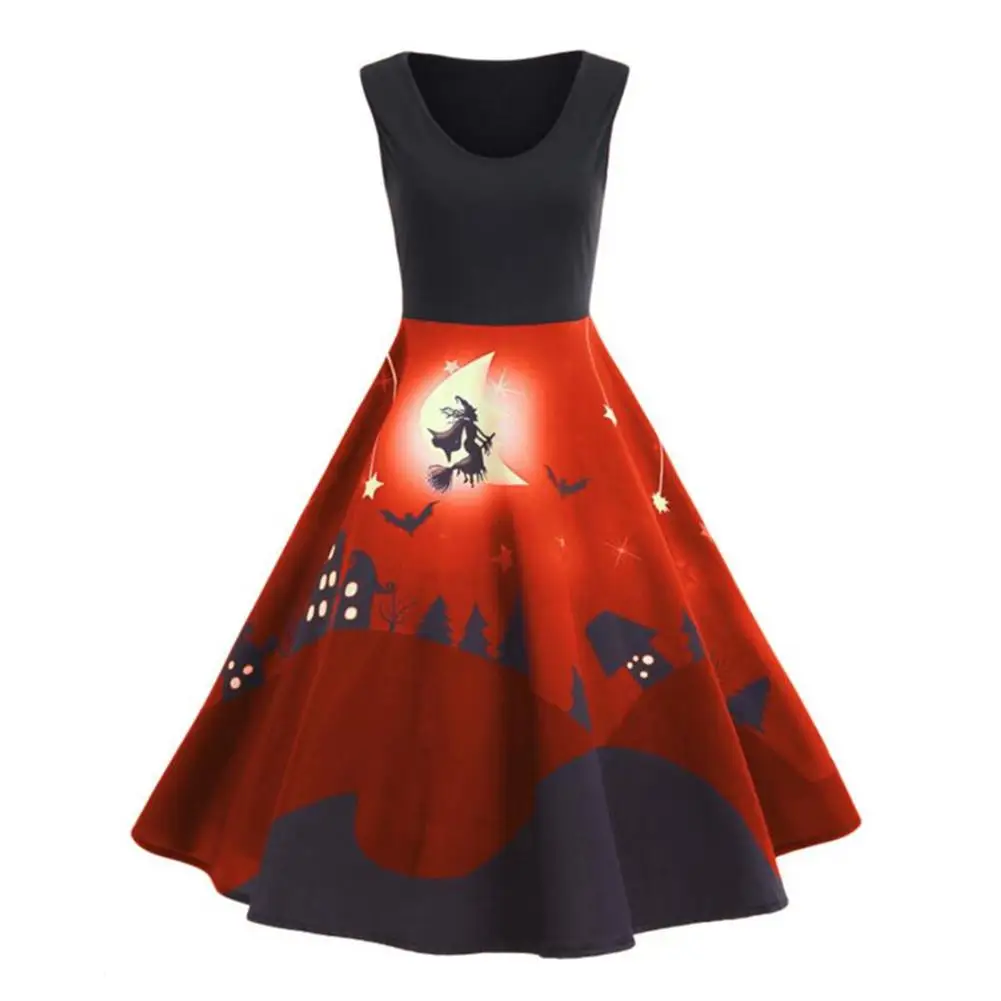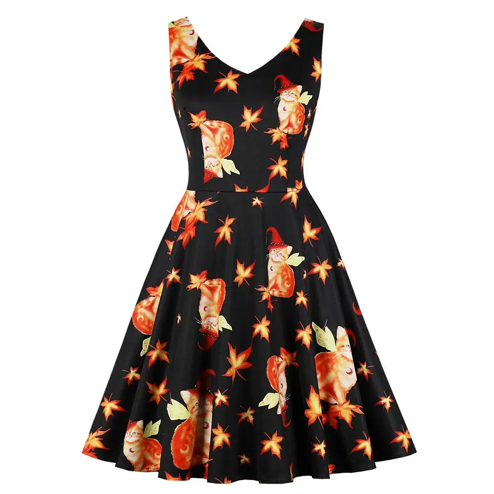 This Halloween pumpkin head printing vintage dress made of high-grade fabric feels comfortable and delicate.