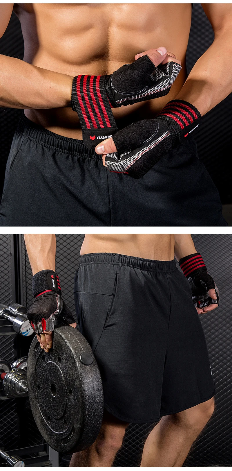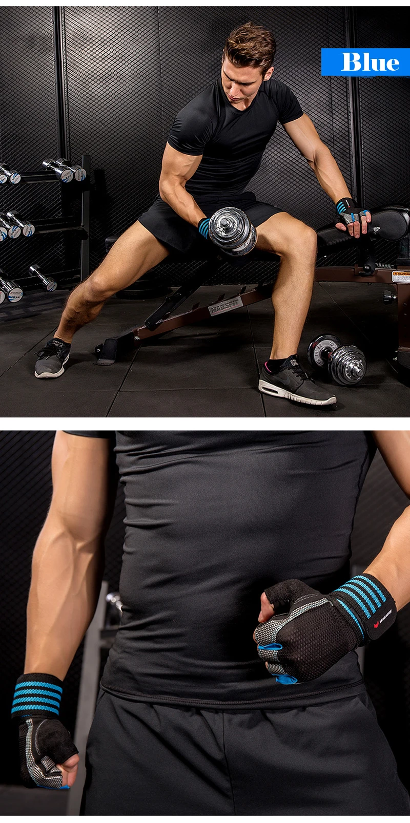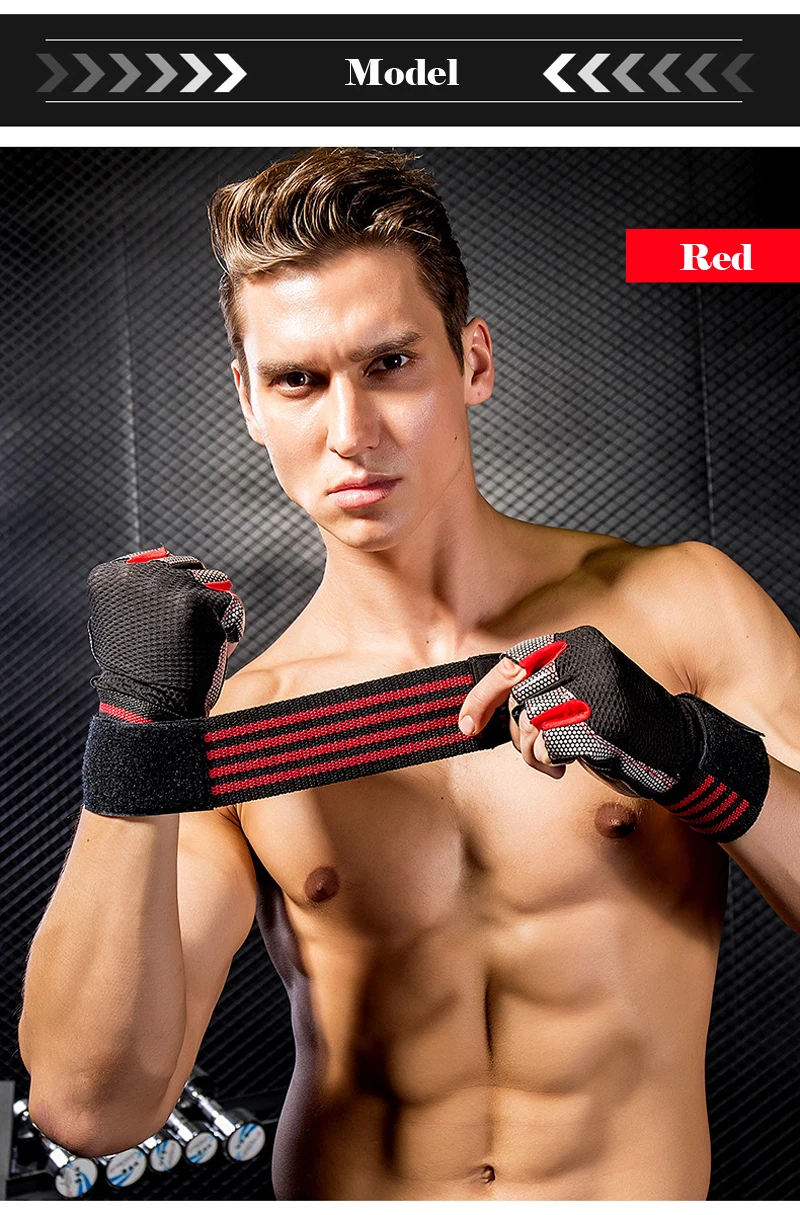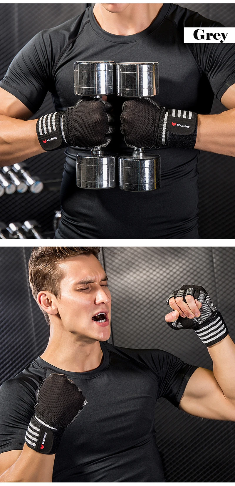Hand Wrap Wristband Sport Gloves Half Finger Breathable Weightlifting Fitness Gloves Dumbbell Men Women Body Building Gym Gloves