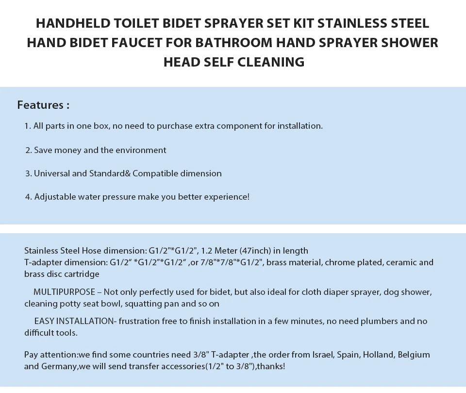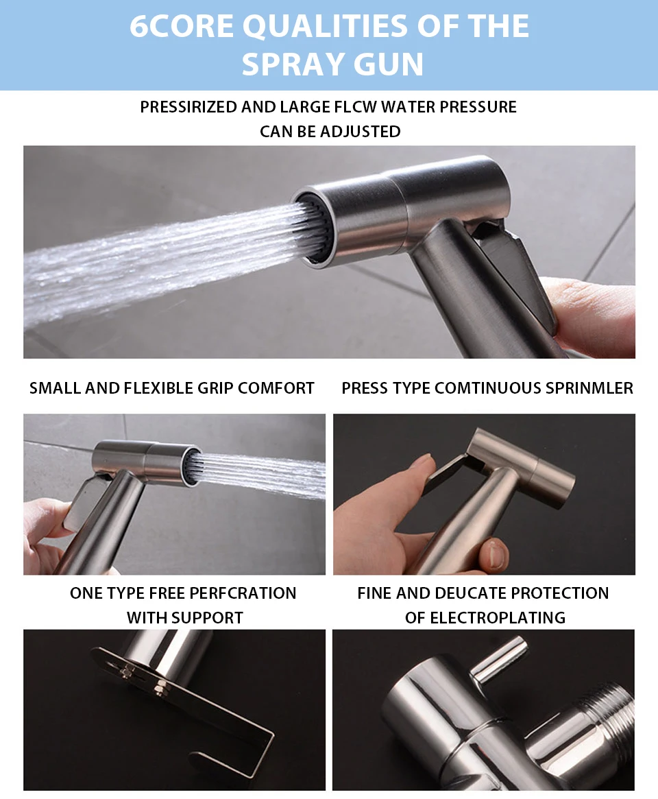 Handheld Toilet bidet sprayer set Kit Stainless Steel Hand Bidet faucet for Bathroom hand sprayer shower head self cleaning