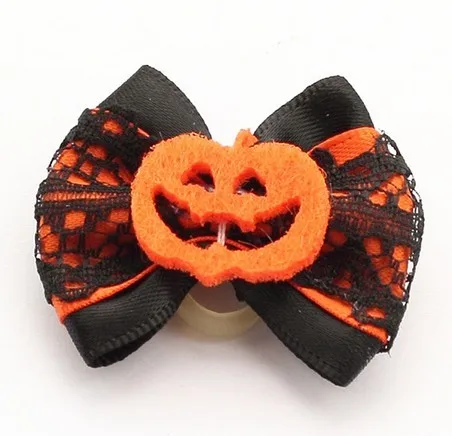 Handmade Smiley Pumpkin Decorating Halloween Dog Bow Festival Bows For Dogs Pet Accessories