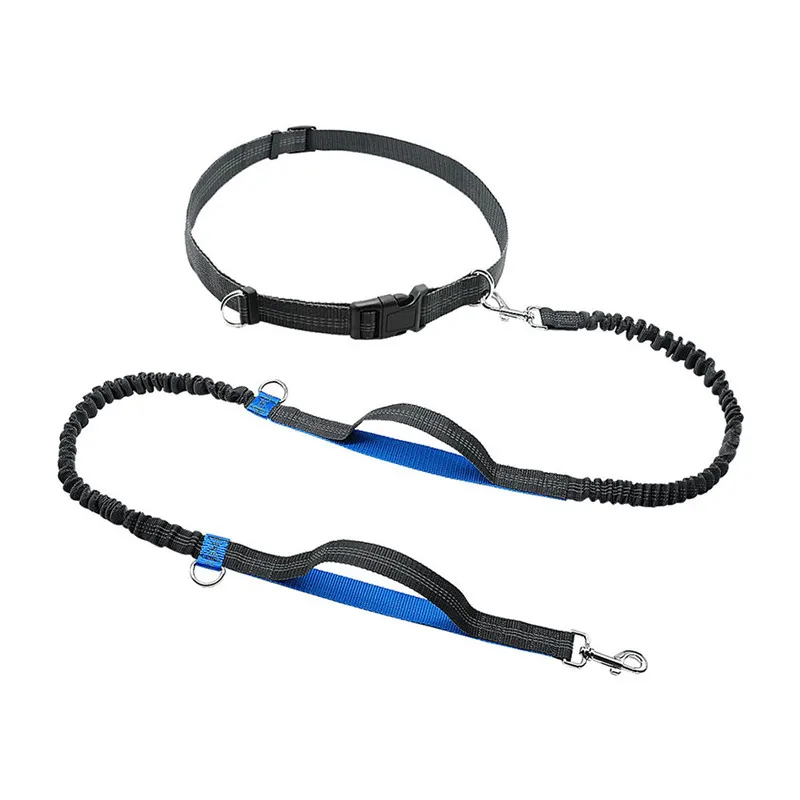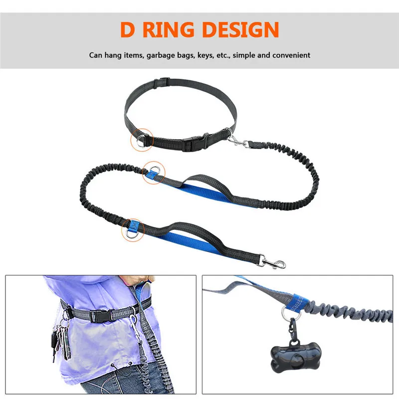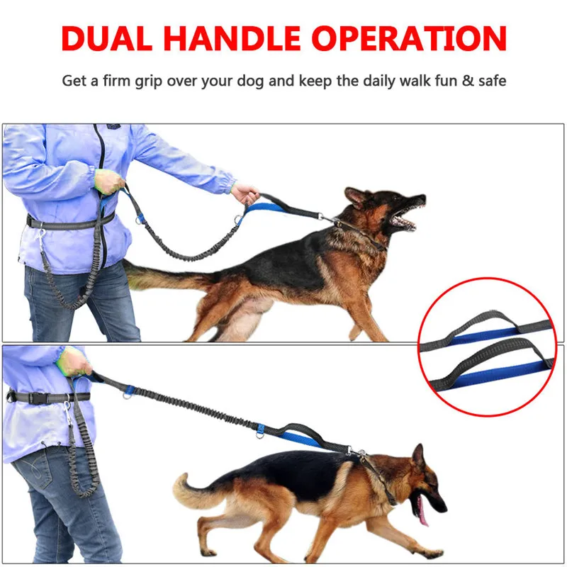 Hands Free Pet Dog Leash Running Jogging Waist Belt Set Reflective Strip Elastic Leash With Dual Bungees for up to 150 lbs Large