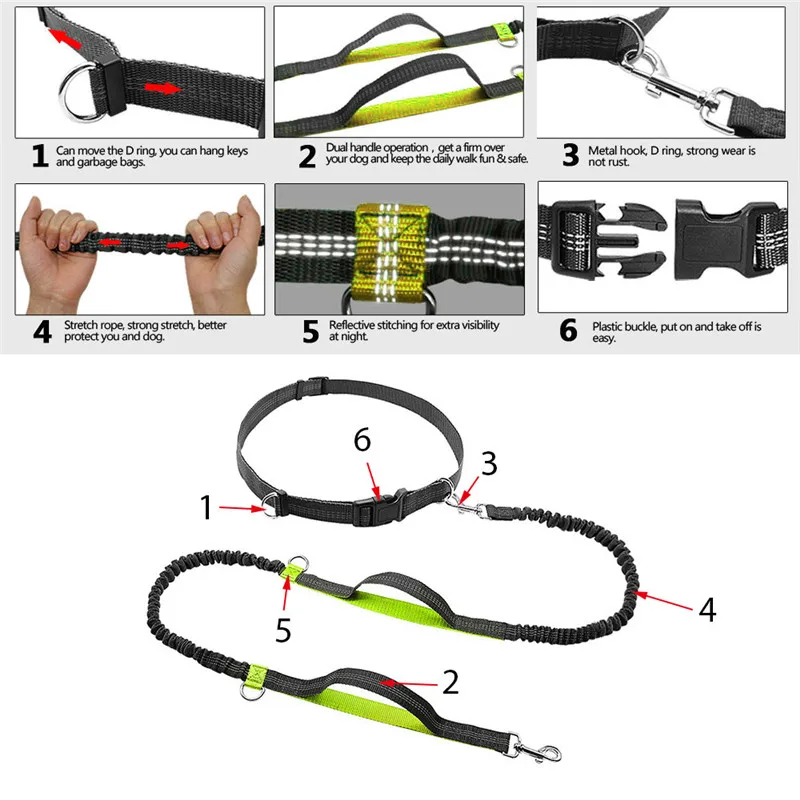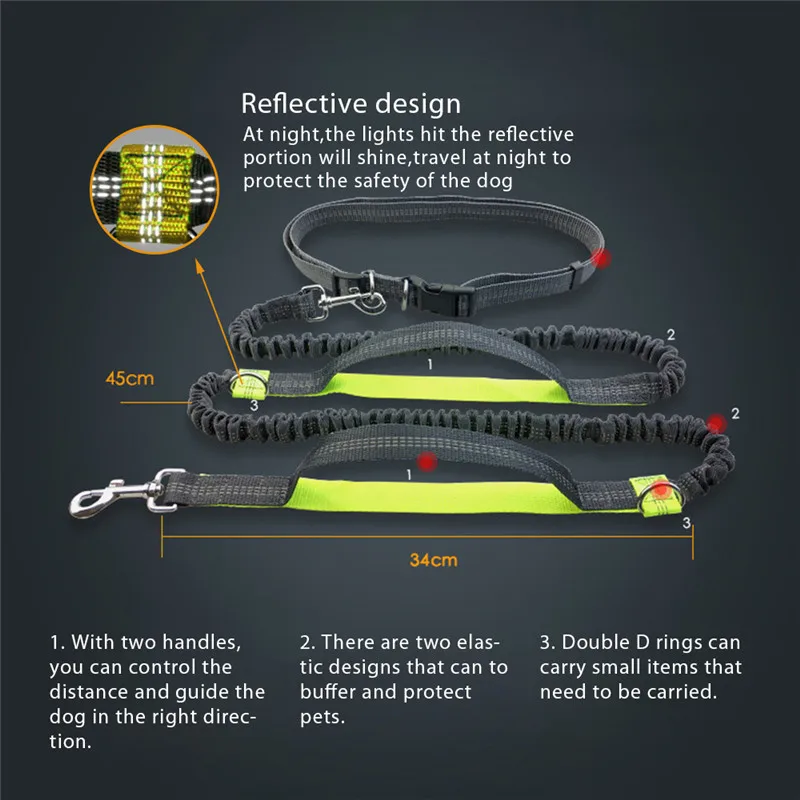 • Reflective Sithching For Night Use: Benefit from extra safety at night with the luminous reflective stitching; enjoy a hands free dog leash for running that provides added visibility