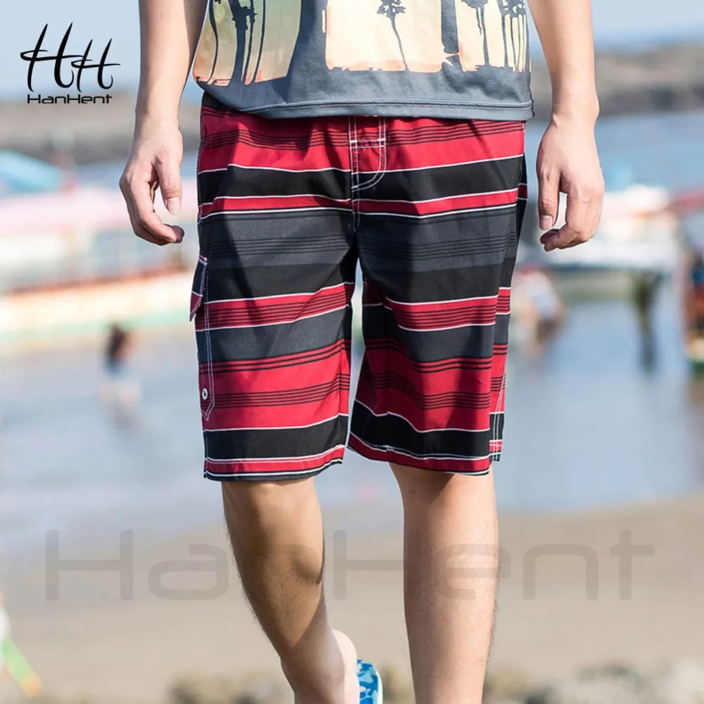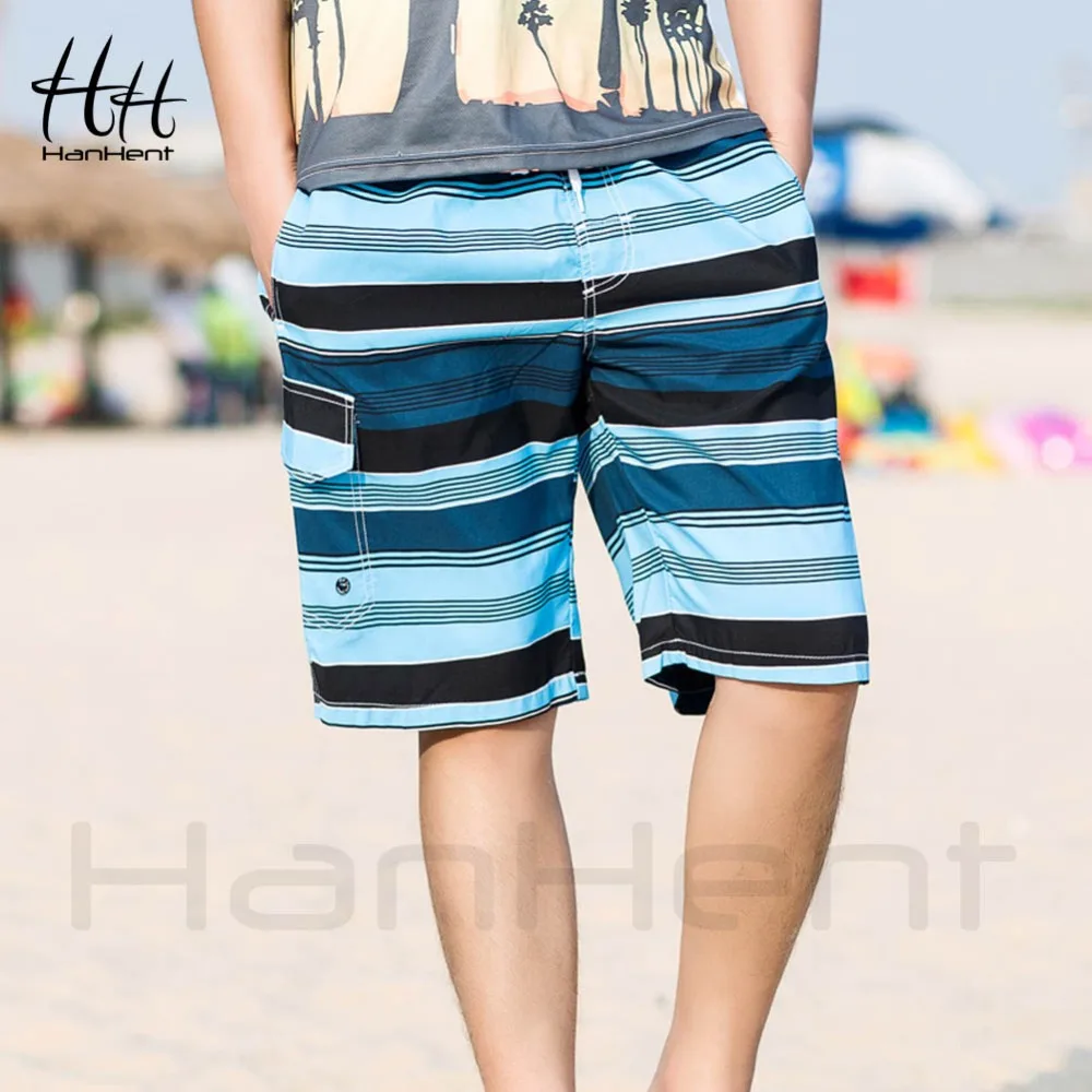 HanHent 2018 New Male Striped Shorts Hot Beach Shorts Men Printed Casual Holiday Straight Pants Fitness Summer Board Shorts