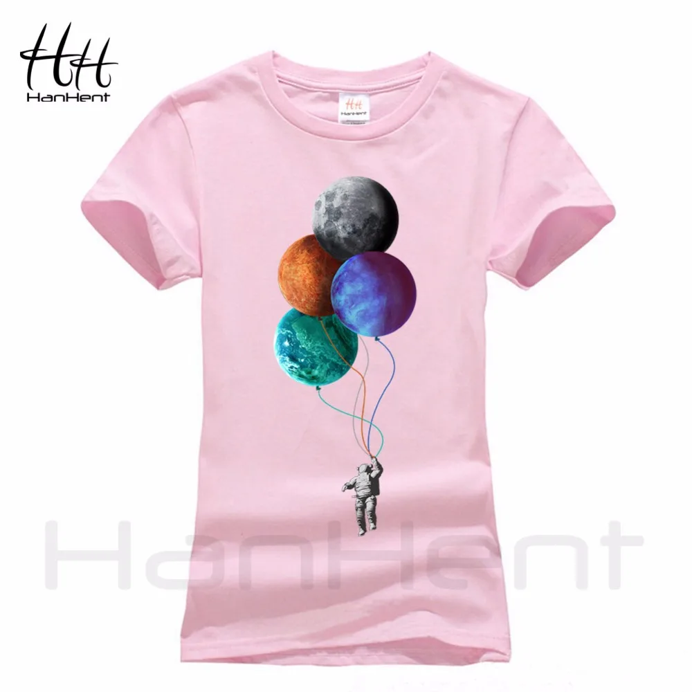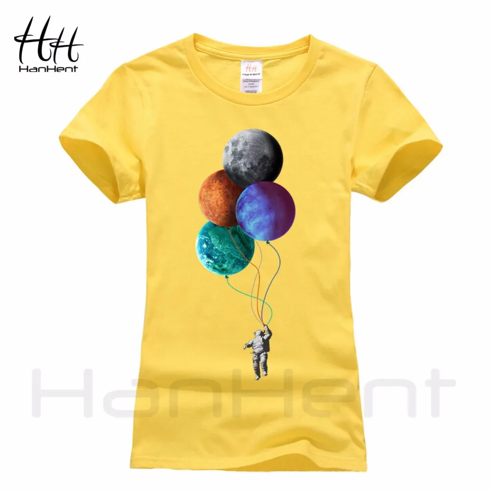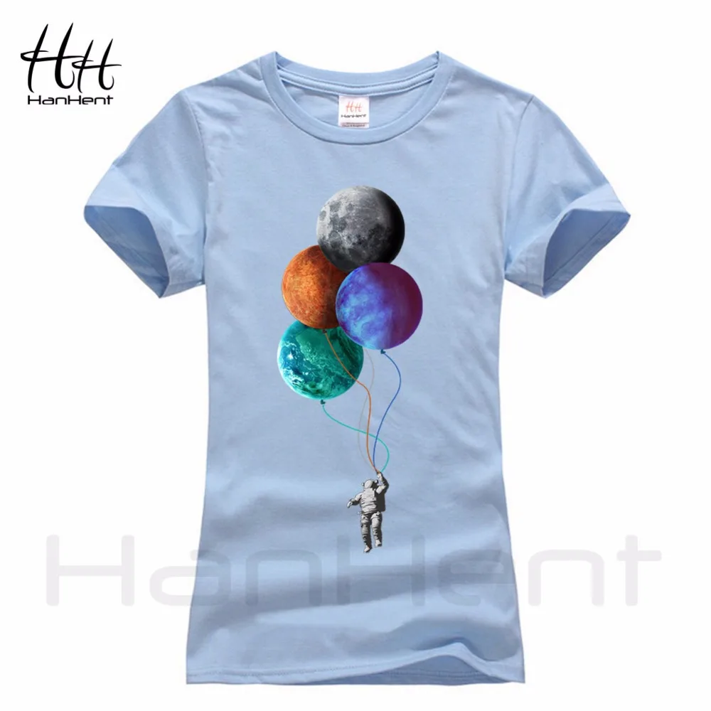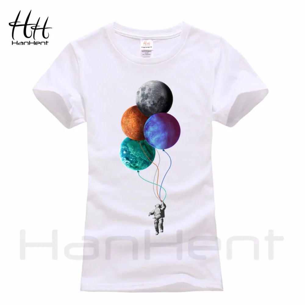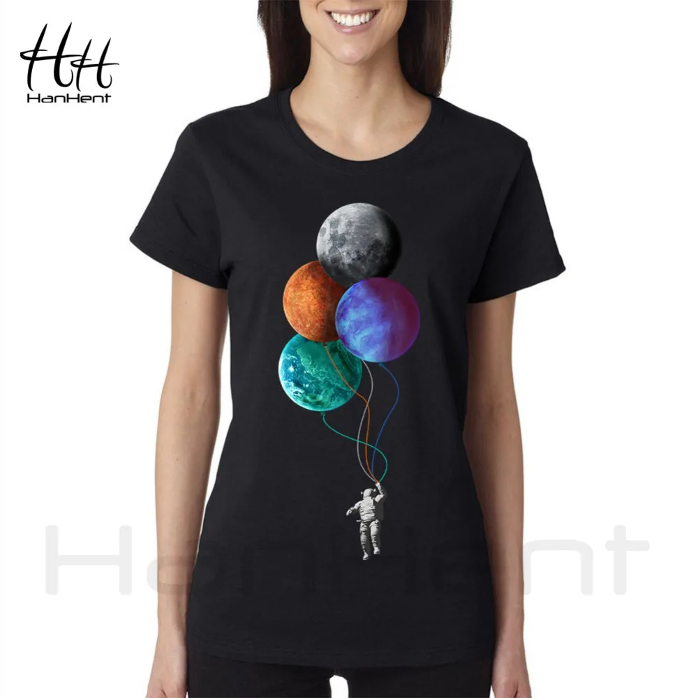 HanHent Astronaut and Moon T-shirt Women 100% Cotton Creative design 2018 Summer Fashion Streetwear Ladies T Shirt Tops TB5405