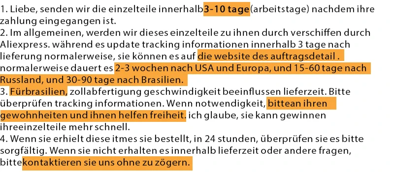 • If you did not receive the product within the guaranteed time( 45 days not including 2-5 day processing) you can request a refund or a reshipment.