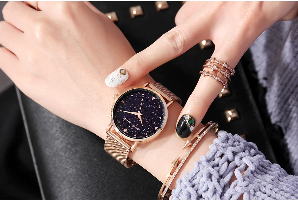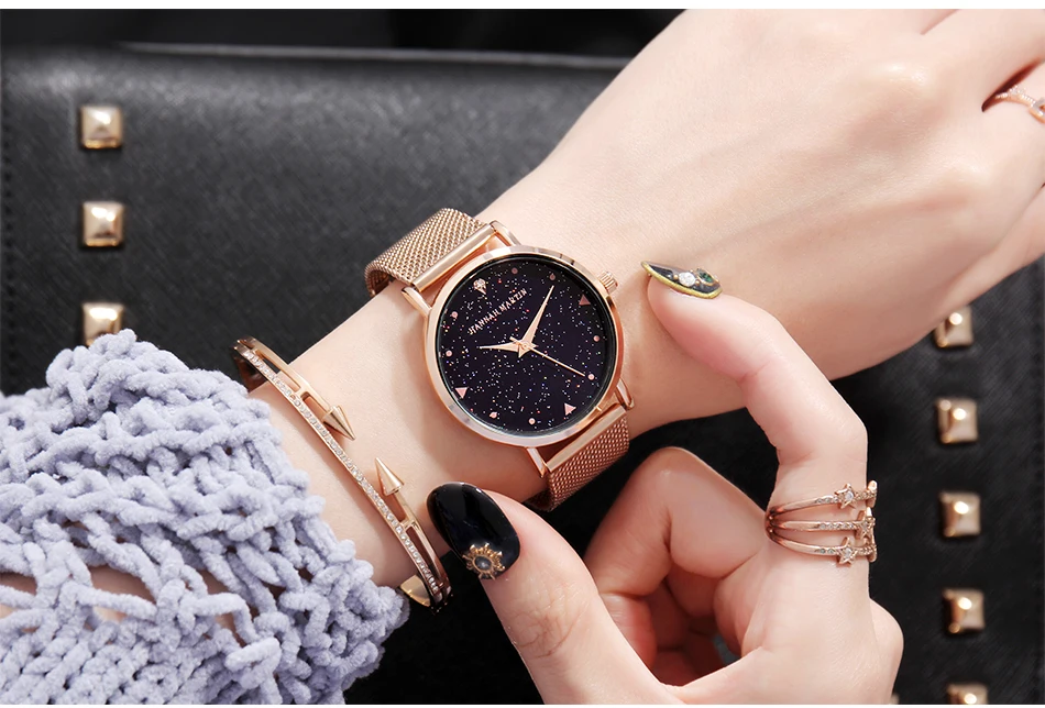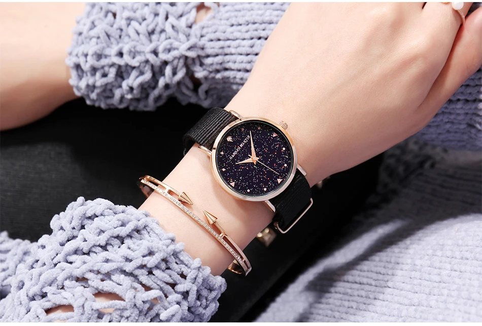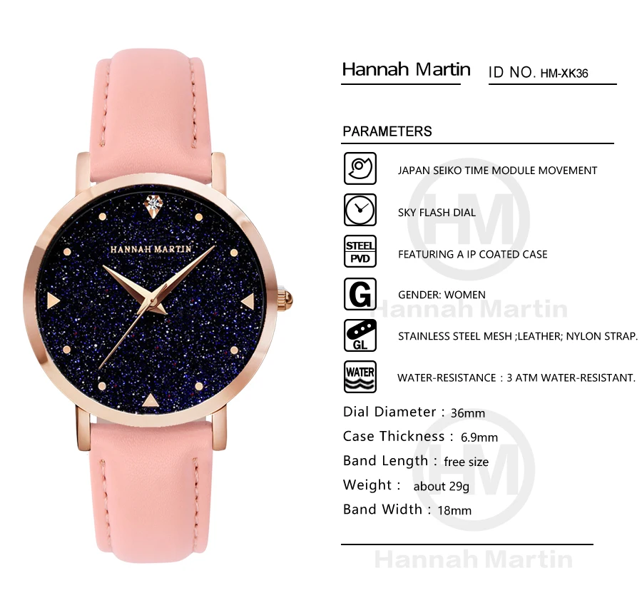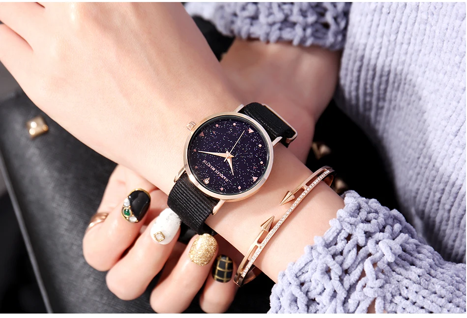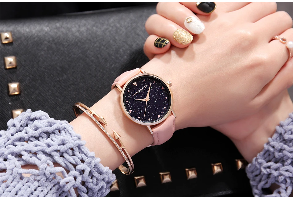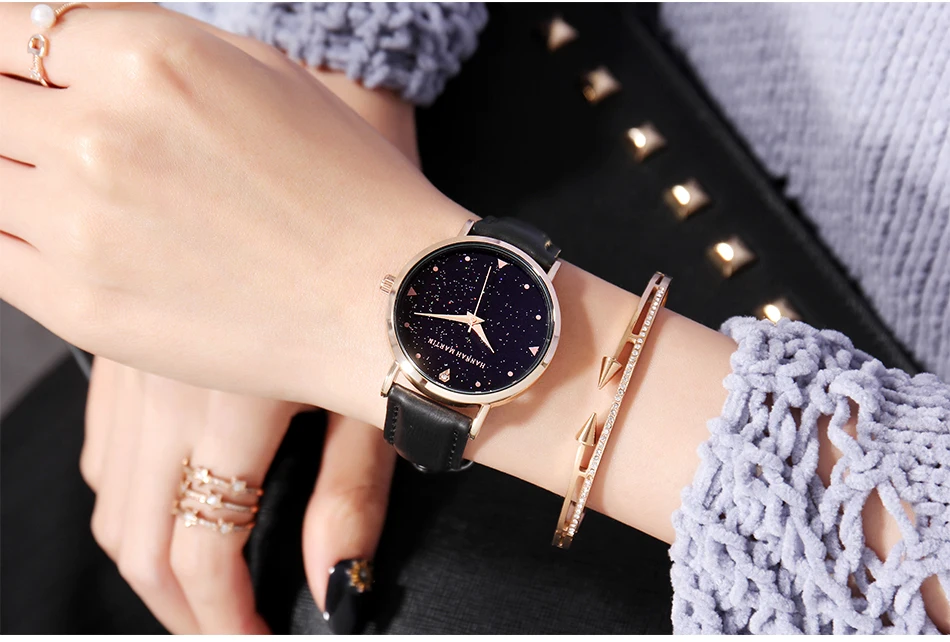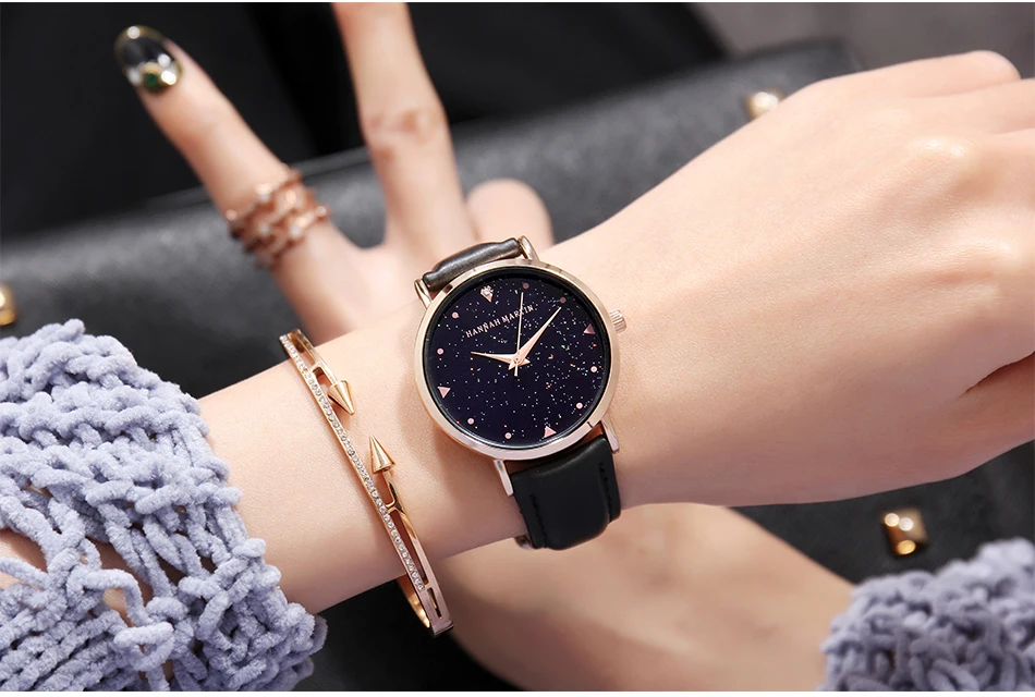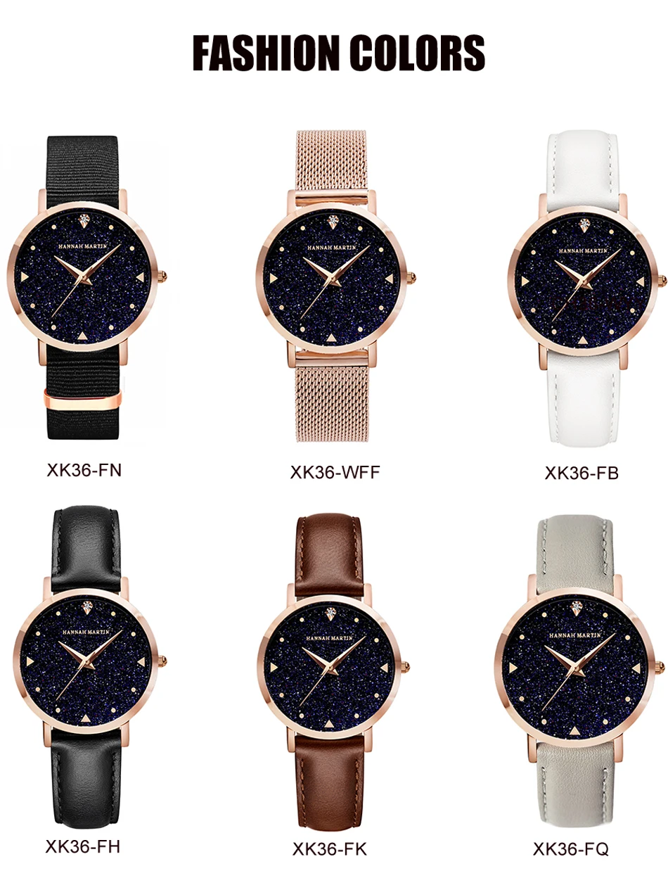 Hannah Martin Design Analog Watches Women’s Unique Romantic Star Sky Dial Casual Fashion Quartz Watch Women