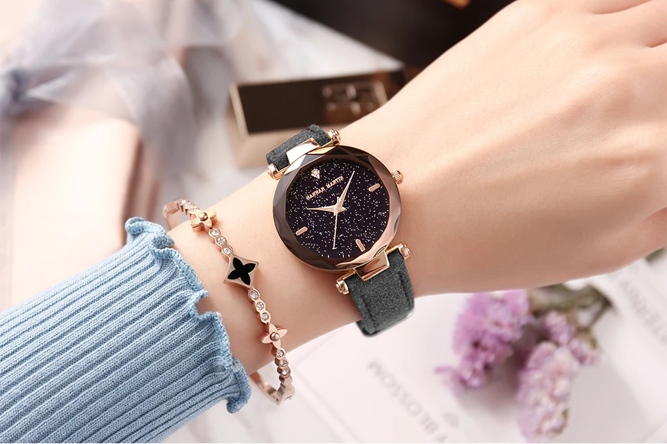 Hannah Martin Fashion Golden Ladies Watch Women Leather Wrist Watches Diamond Gold Clock Saat Relogio Feminino bayan kol saati