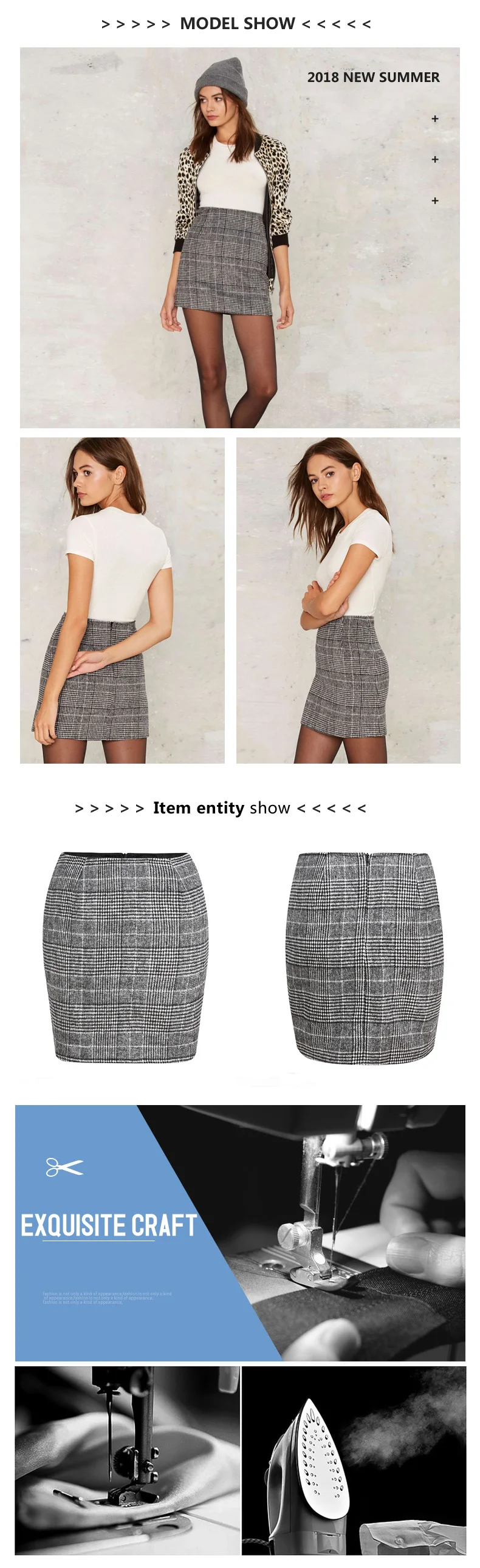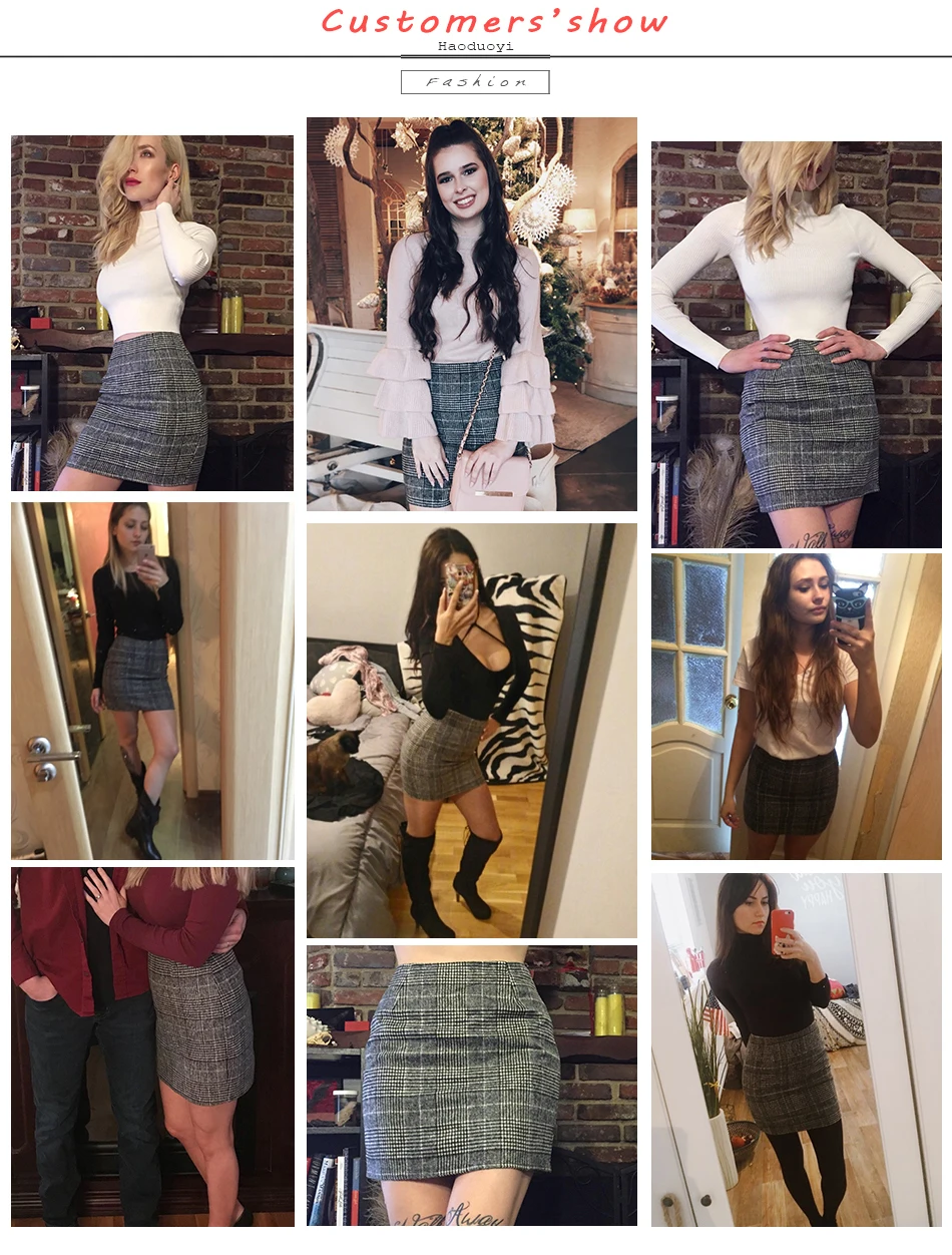 Haoduoyi Pencil Sexy High Waist Plaid Mini Short Skirt Casual Women Office Lady Buttoms Zipper Back Hot Sell The New Listing