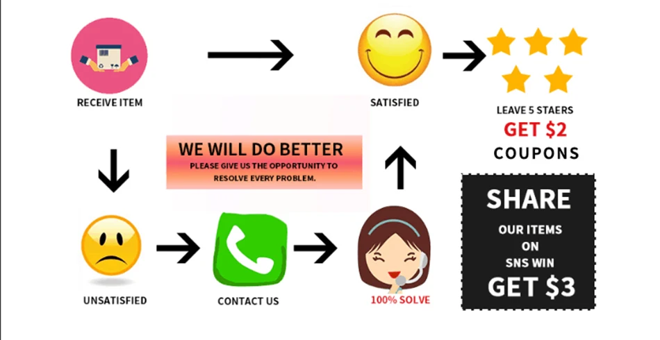 2.If you don’t satisfied our products,pls contact us before you leave negative feedback.