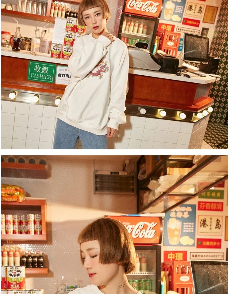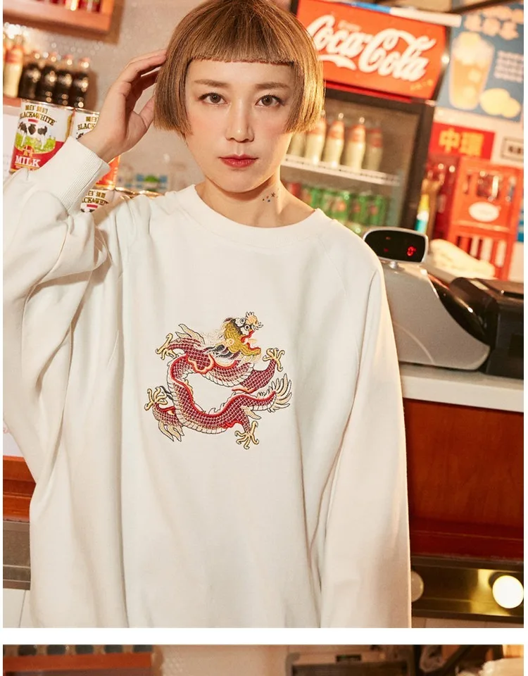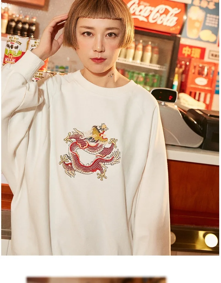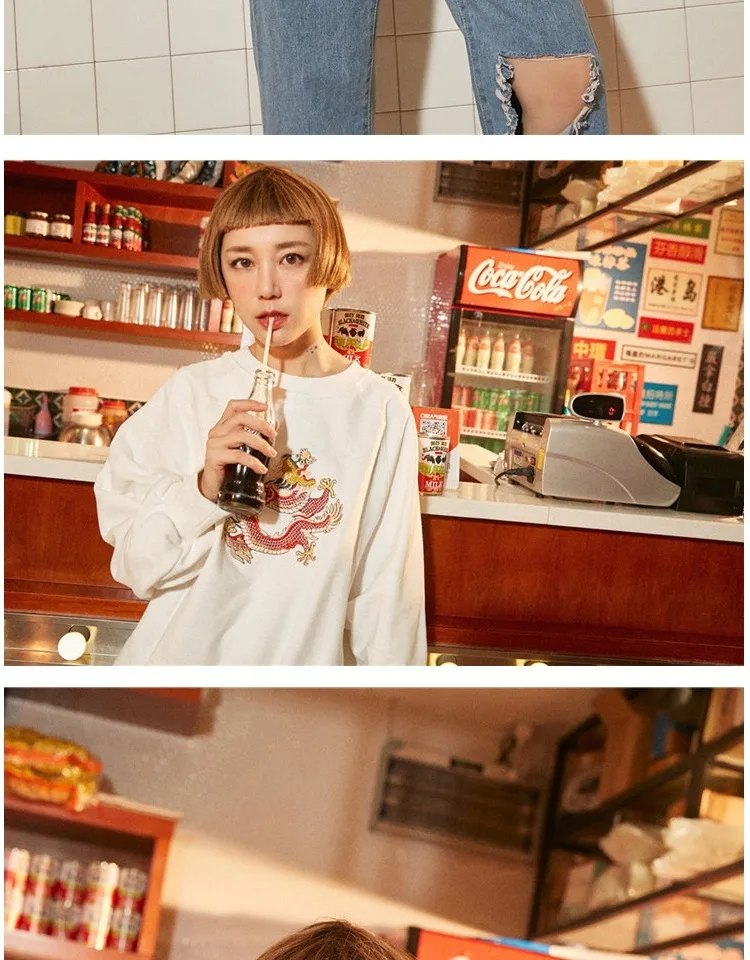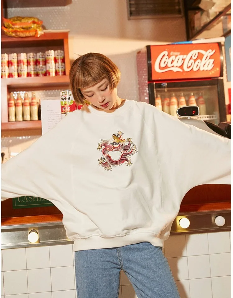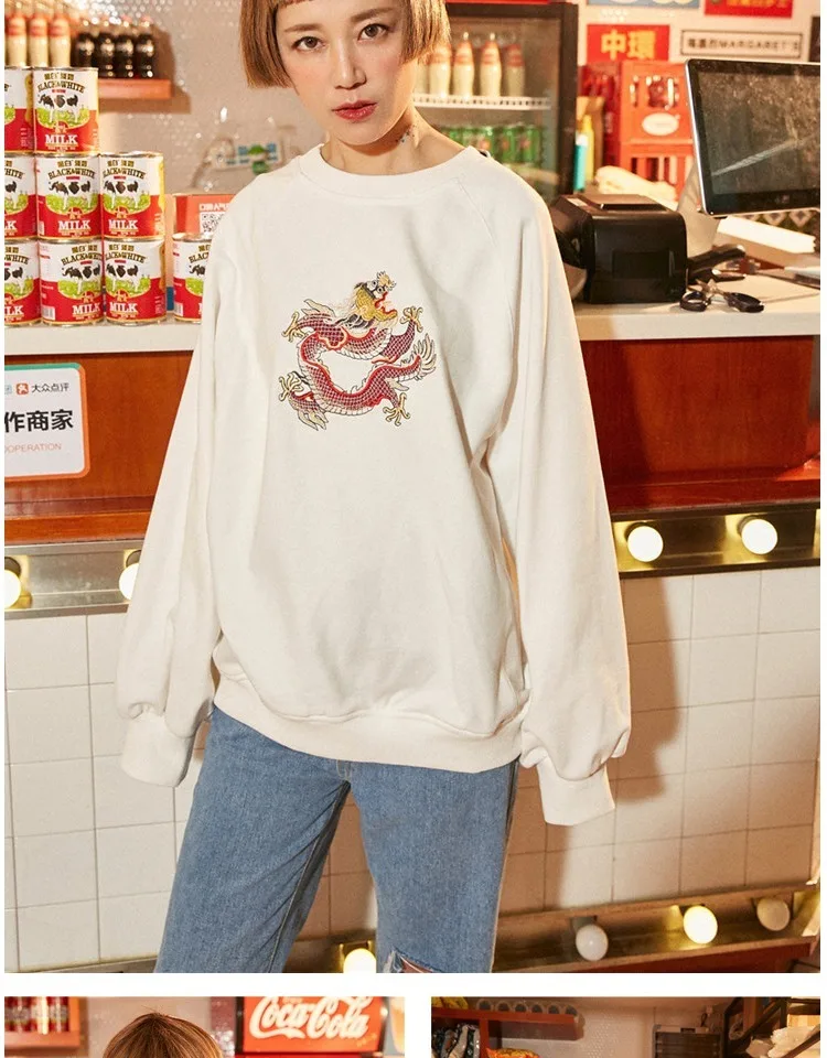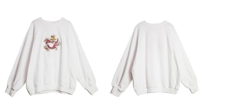 Harajuku O Neck Embroidery Pullovers Autumn And Winter New Women Long Sleeve Sweatshirts