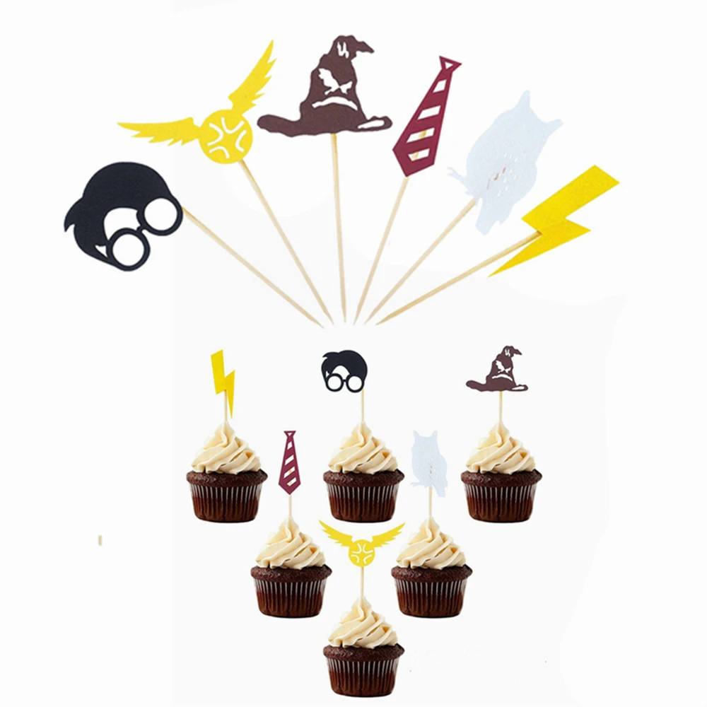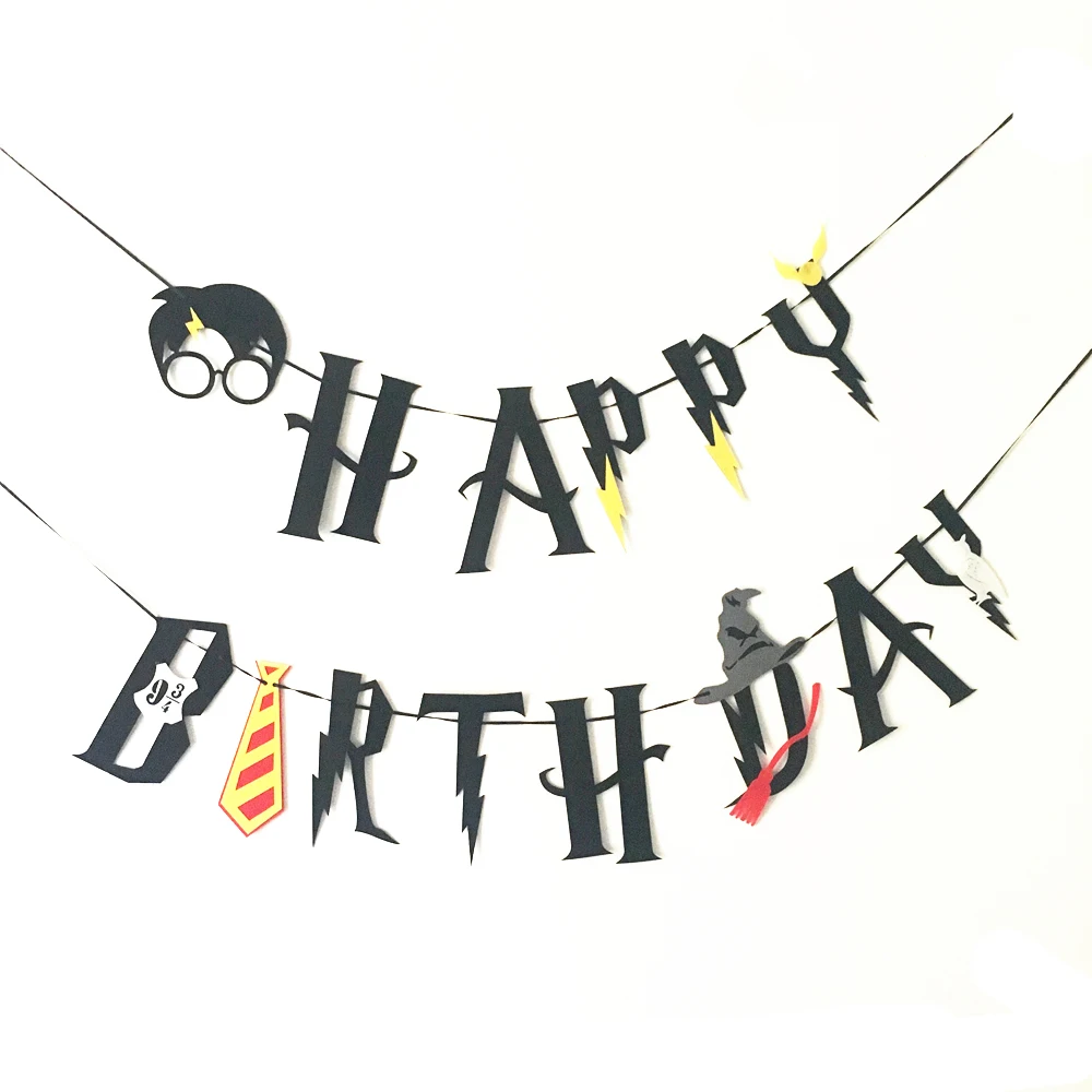 Harry Potter Happy Birthday Banner Cake Topper Hogwarts Lightning Felt Flags Bunting for Baby Birthday Party Cupcake Decoratio