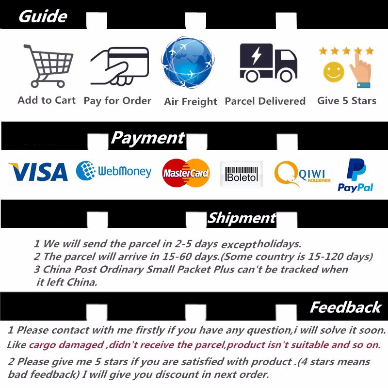 • If you did not receive the product within the guaranteed time( 45 days not including 2-5 day processing) you can request a refund or a reshipment.