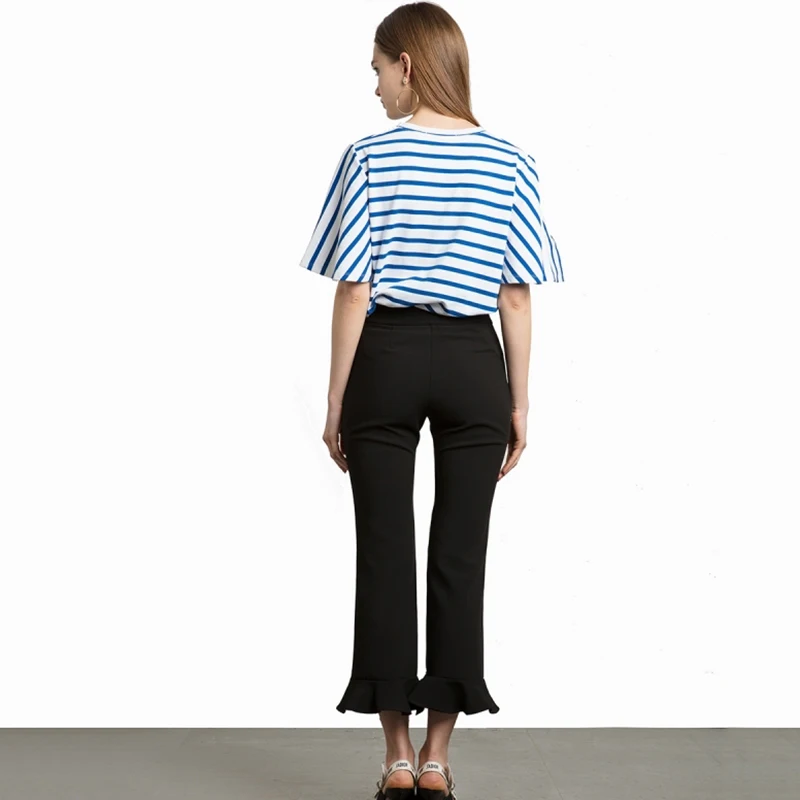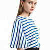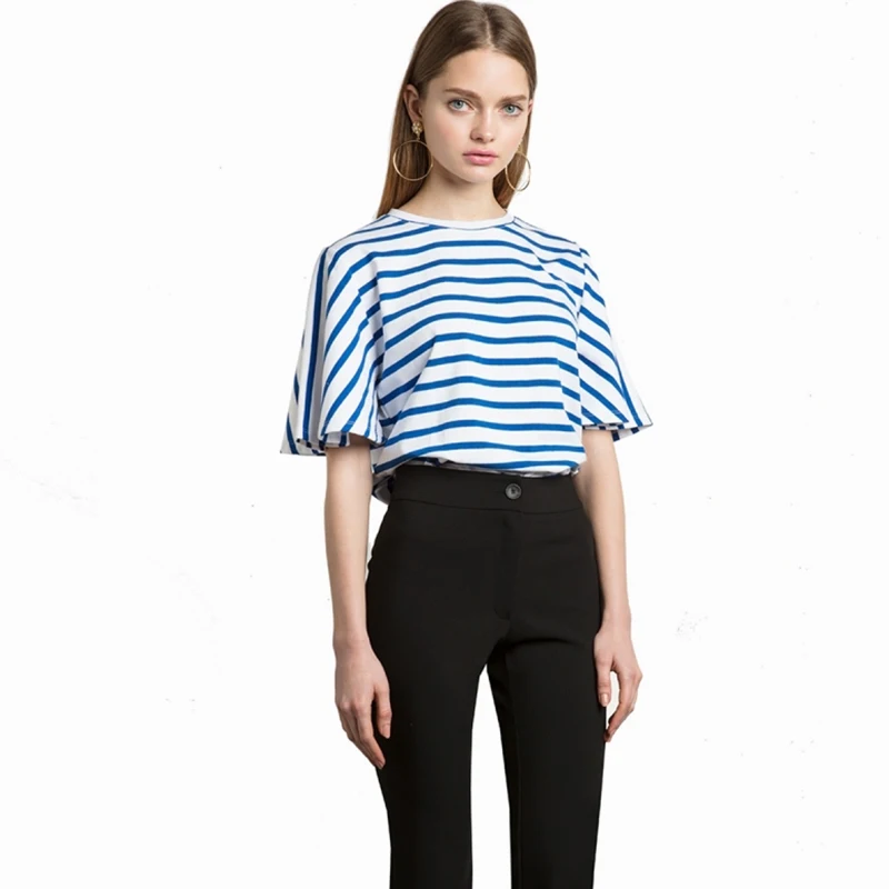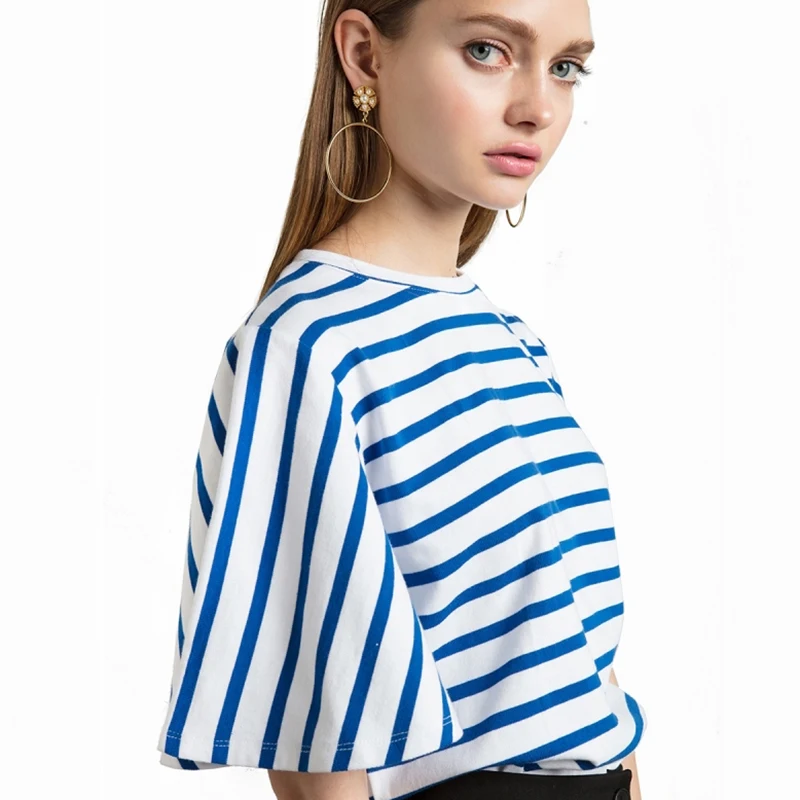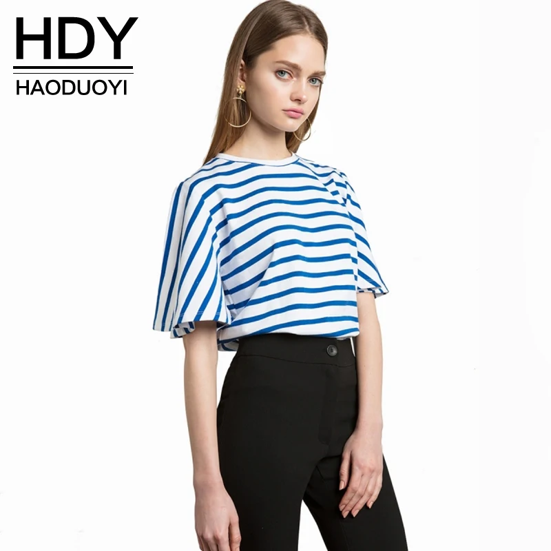 HDY Haoduoyi 2017 Fashion Blouse Women Casual Loose Blue Striped Lady Tops Navy Style Half Sleeve Brief Female Summer Shirt