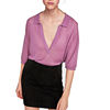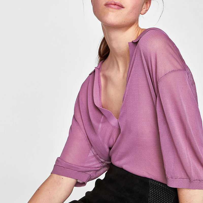 HDY Haoduoyi Women Solid Deep V-neck Sheer Turn-down Collar Sweatshirt Brief 2018 New Arrival Tops
