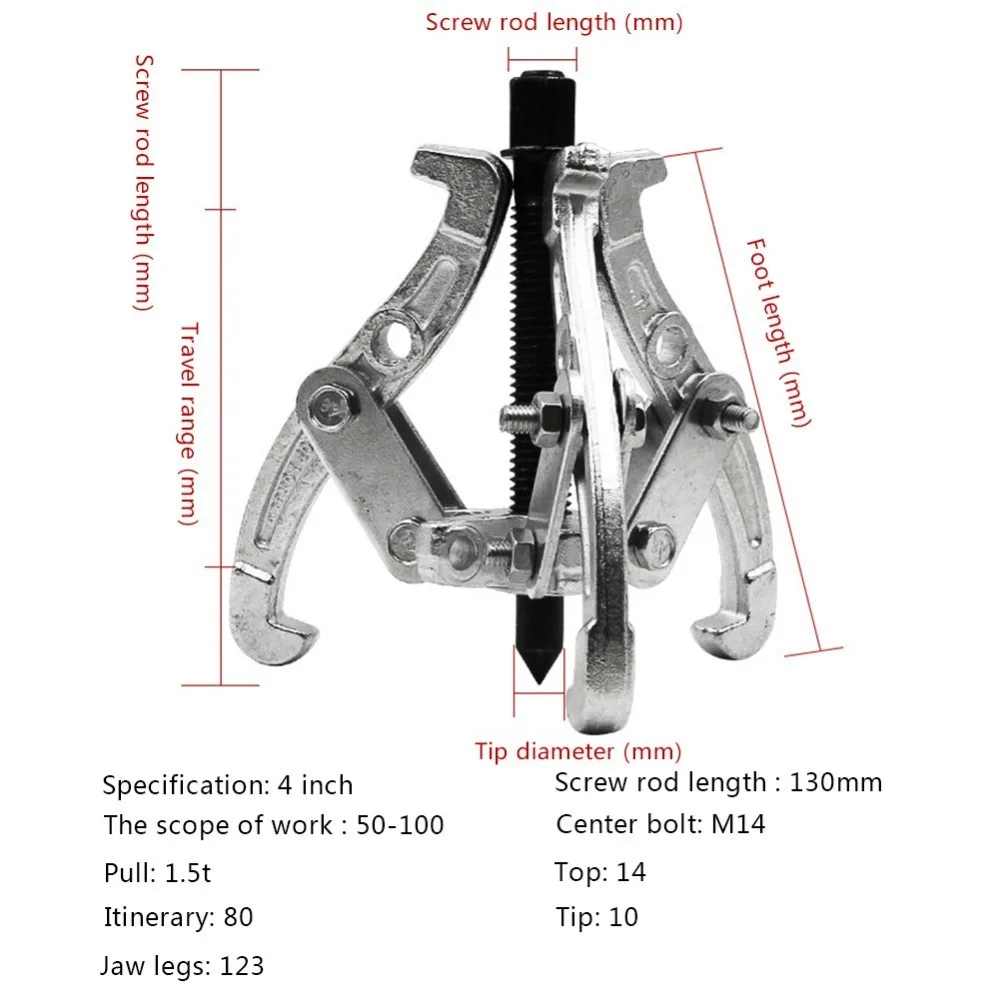 Specifications: 100mm (4 inch) three-jaw puller top puller