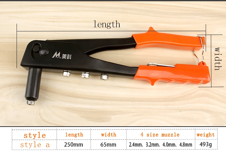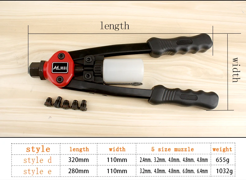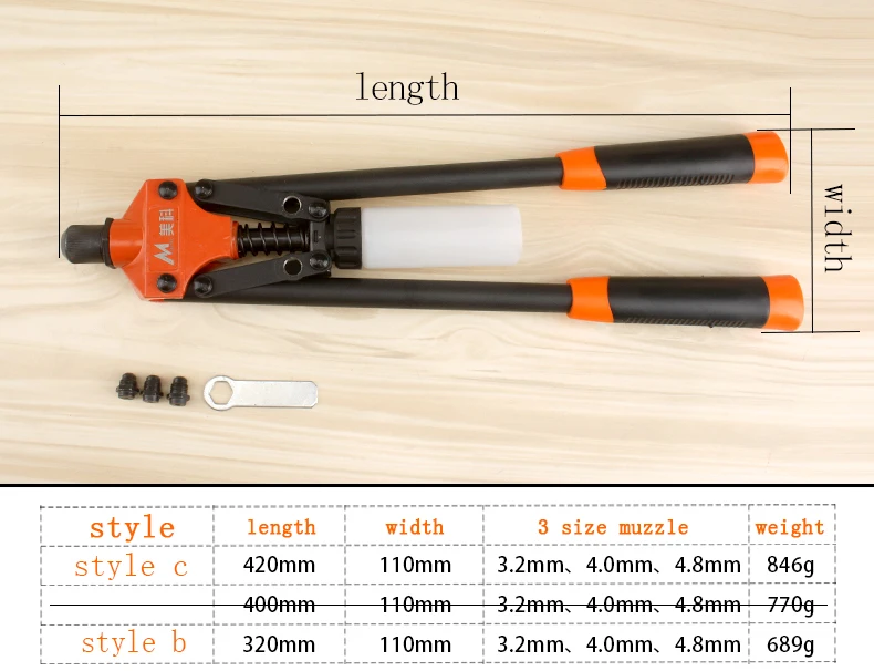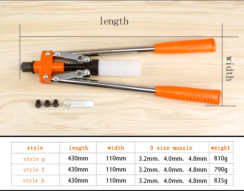 Heavy Duty Hand Riveter Manual Rivet Gun with 50pcs Rivets Different Kind of Muzzle Hand