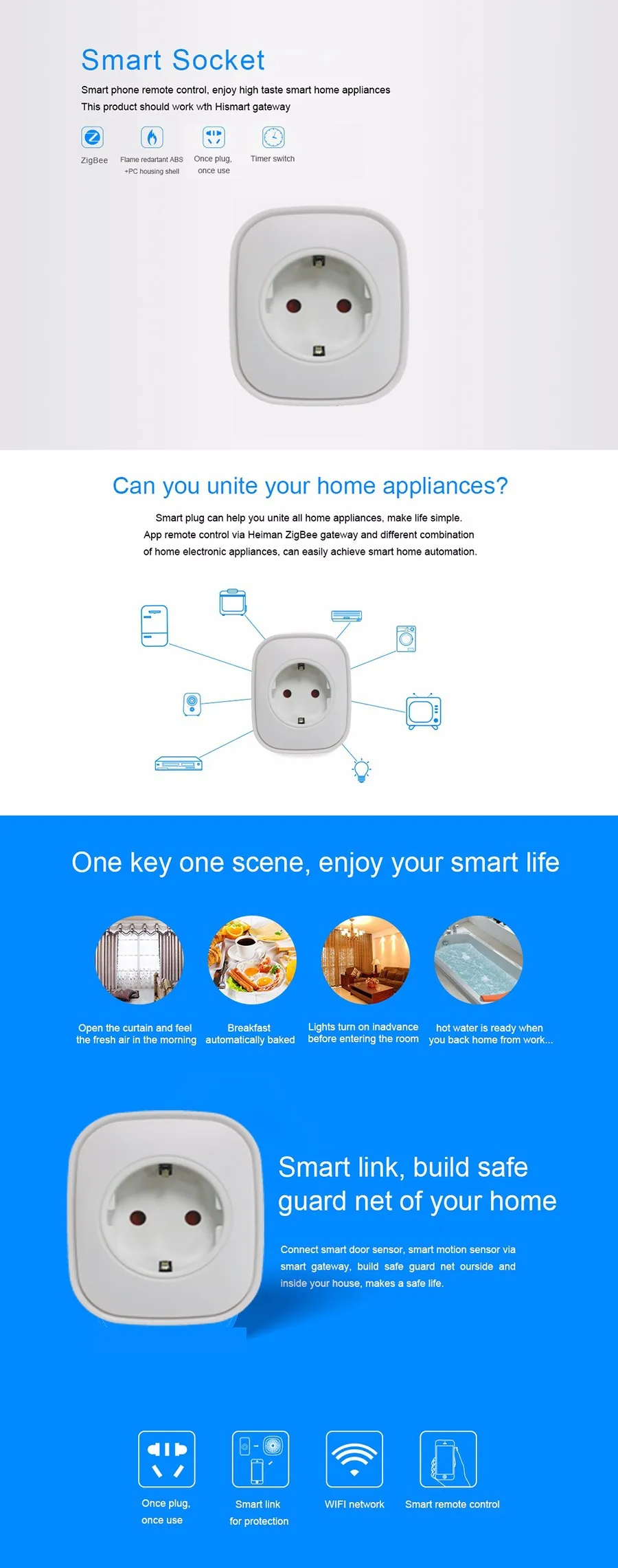 Pay attention : this Smart metering Socket must be work with Zigbee Hub/gateway.Can’t work independently.