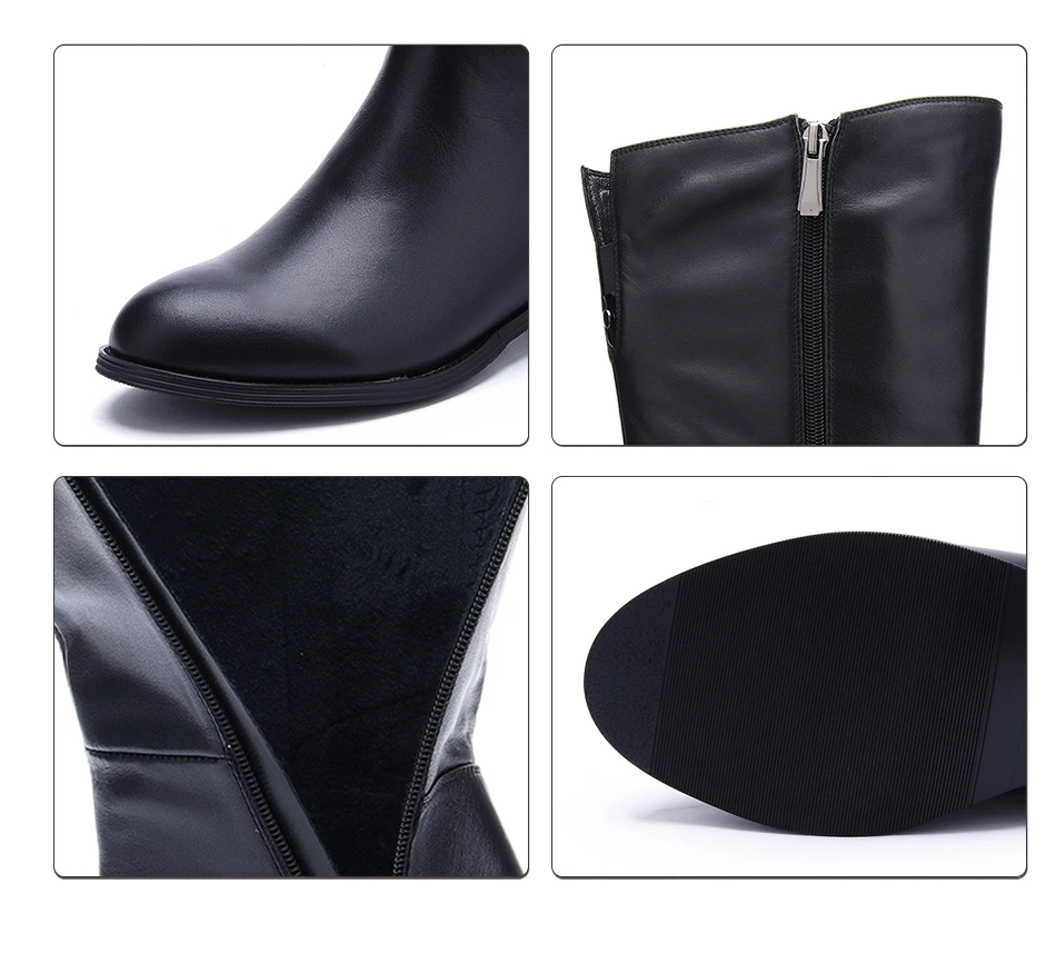 Hellenia Fashion Black Over Knee Boots Cow Leather Warm Plush Handmade High Quality Classic Women Winter Top Brand shoes