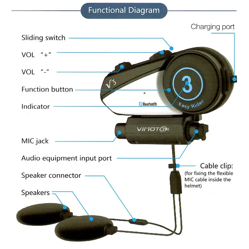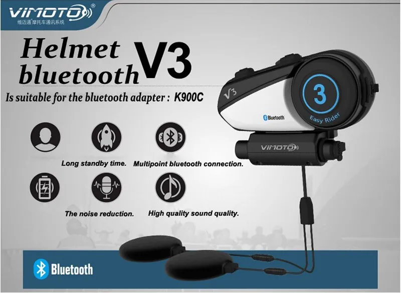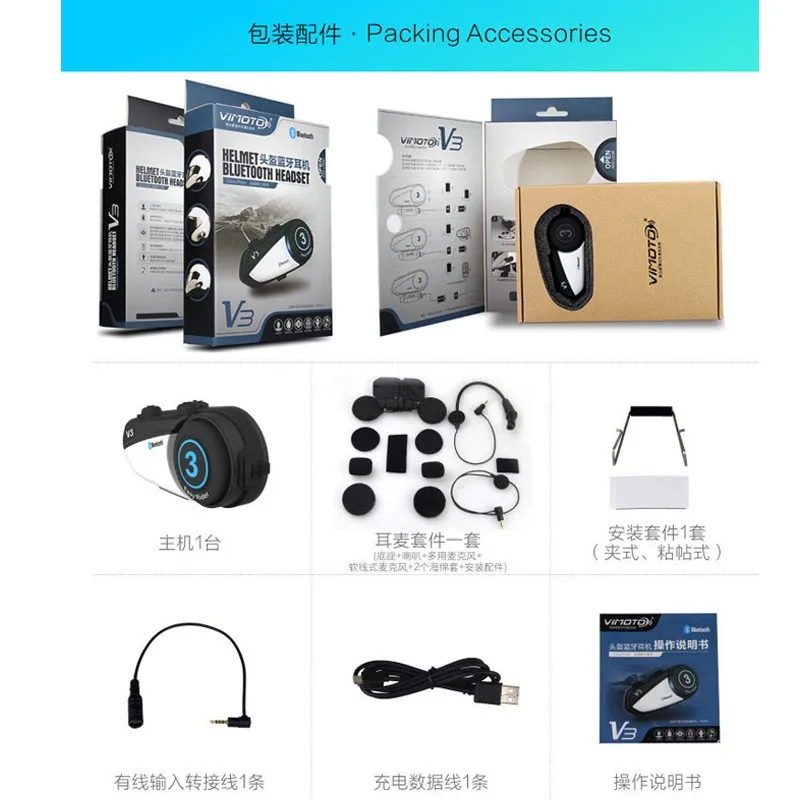 English Version Helmet Bluetooth Headset Motorcycle Vimoto V3 Multi-functional Stereo Headphones For Two Way Raido Easy Rider