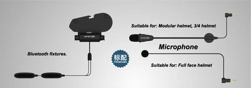 V6 comes with 600mah battery capacity, however, V8 is 850mah instead, V6,V8 can be connected to 3 Bluetooth devices (2 mobile phones + 1 Vimoto rear seat bluetooth headset or a mobile phone + 1 Vimoto Bluetooth adapter + 1 Rear seat bluetooth), two pieces V6,V8 have the front and rear seats talkback function, the phone can be automatically or manually answered, with a Voice Coexistence mode, Enable you to hear the sound from Vimoto bluetooth adapter and rear seat bluetooth headset at the same time, more powerful than V3